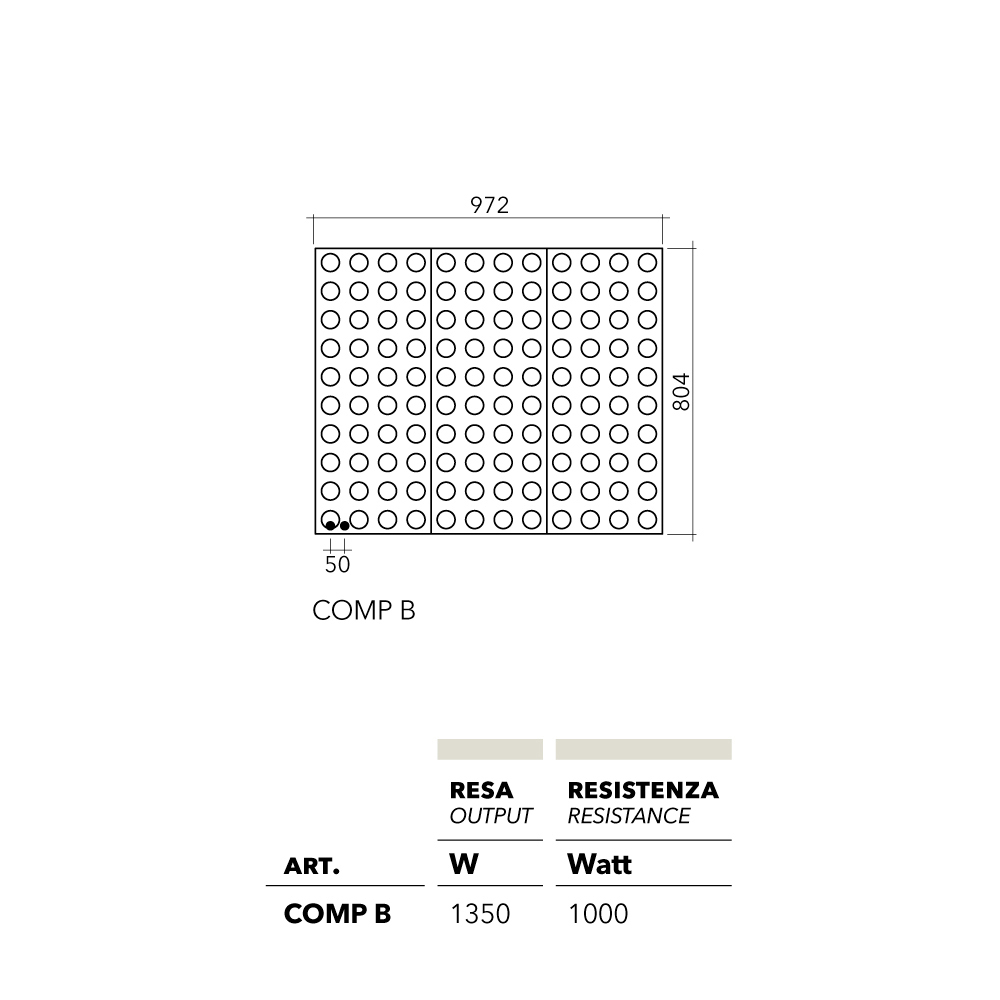 Product includes: - Heating battery - Cover - Valve and lockshield valve cannot be thermostaticized - Breather valve - Wall mounting - In the composite version, a connection kit between modules is supplied