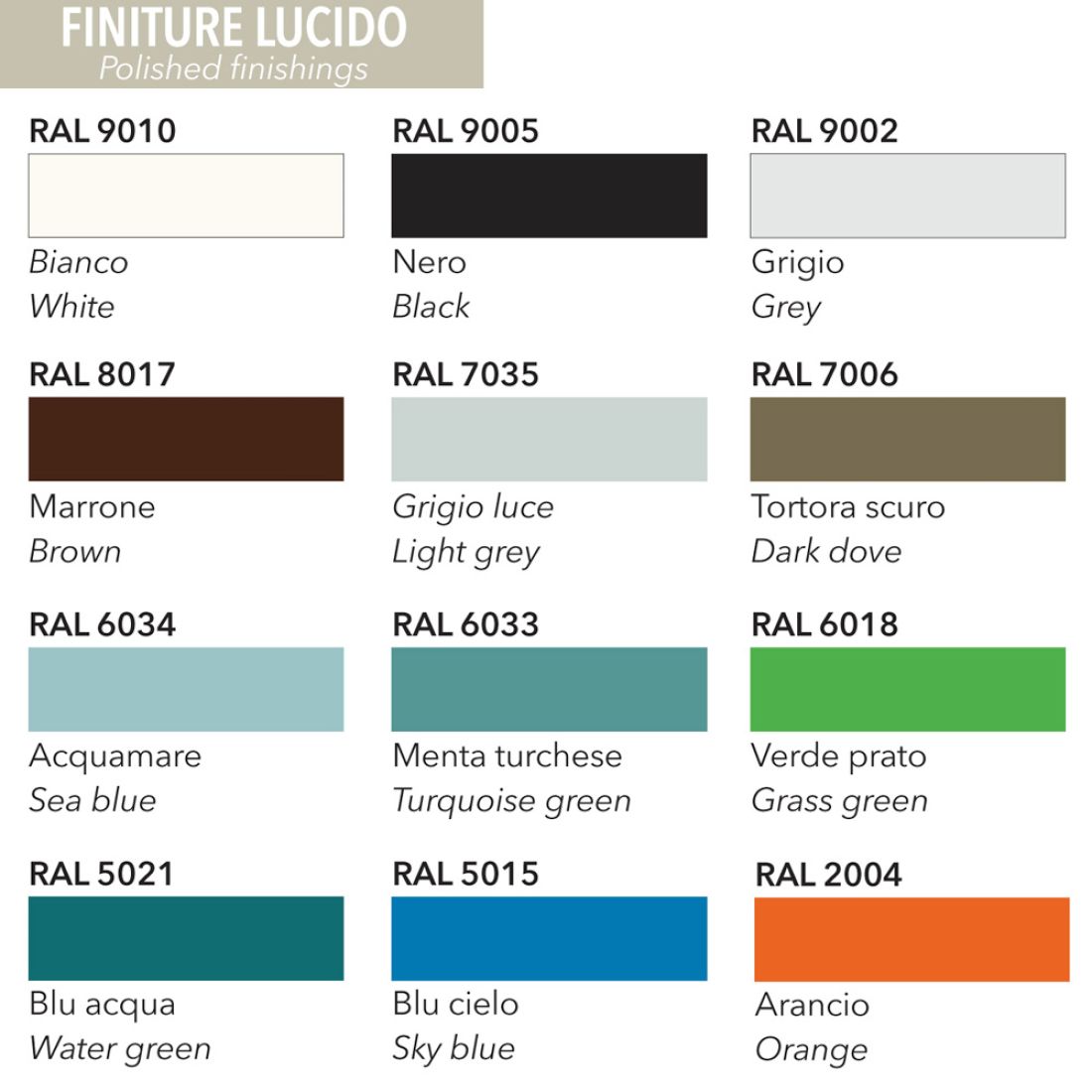 Radiator available in different color variations: view the color chart and indicate the desired color code in the appropriate box.