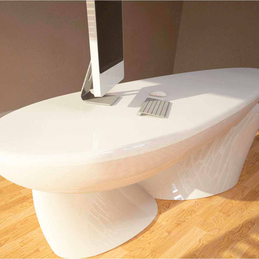 Handmade in Italy Material: Solid Surface; Beautiful desk in Solid Surface; made completely by hand. With sinuous and at the same time decisive and important shapes, the sofstone represents 3 enormous stones resting on themselves which give life to an office table. To stand out from your colleagues, this is the right opportunity. Available in different color variations.