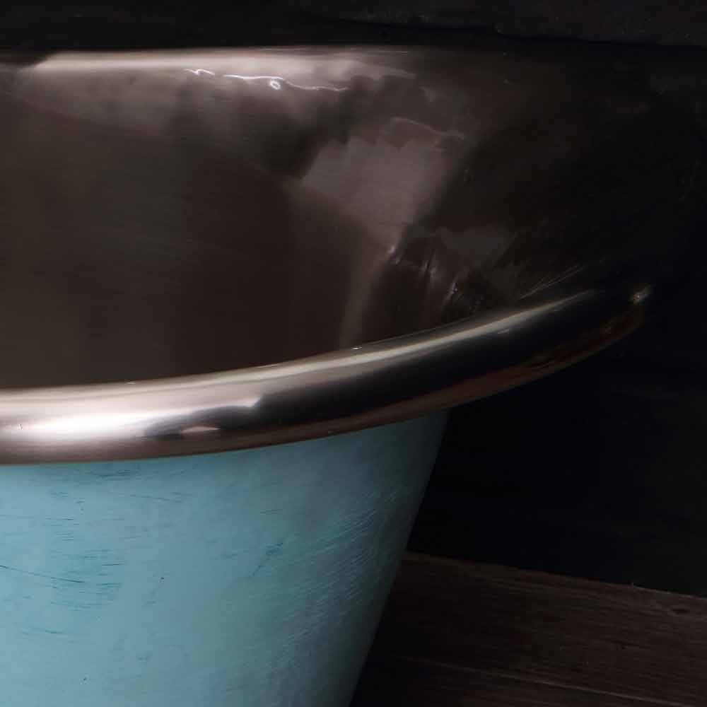 Countertop washbasin with satin nickel finish and Calla verdigris Countertop bathroom washbasin completely made of copper, with internal finish in satin nickel and external finish in verdigris, entirely handmade. Vintage style design washbasin that combines beauty and elegance, gives a touch of class to your home!
