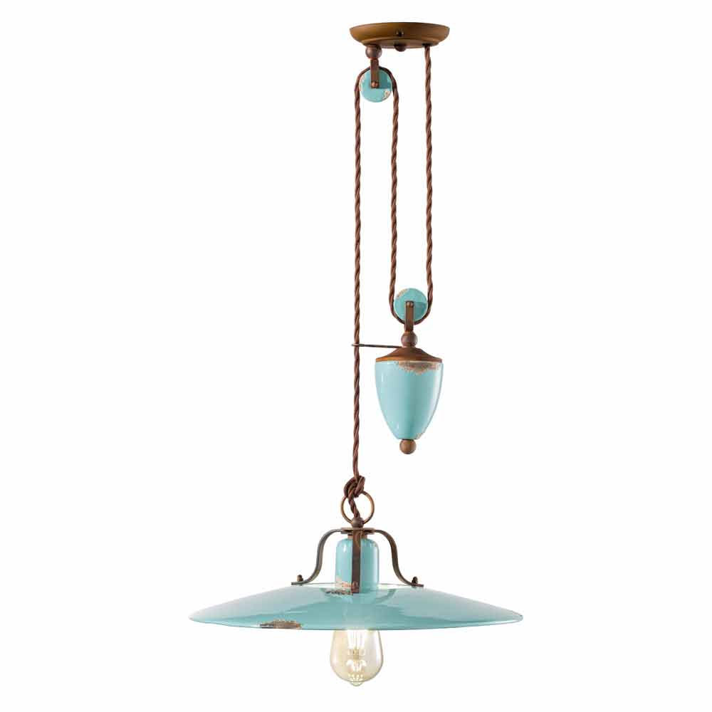 Country ups and downs lamp in metal and handcrafted Evelyn ceramic Evelyn is a fantastic up and down suspension, with a country - vintage style. Suspension handmade by skilled artisans in Italy. Evelyn is an original and functional lamp, made of ceramic and metal and made up of elegantly sinuous lines. The peculiarity of this beautiful lamp is contained in its shape and design. Evelyn brings with it a country-vintage style, and is able to adapt to any decor, from the simplest and most minimal, to the most classic, creating a delicate contrast. Another peculiarity of this beautiful suspension is dictated by the possibility of adjusting the height at will, thanks to the vertical sliding of the counterweight. The neglected effect of the surfaces is a desired detail obtained through precise technical steps. As if time had marked its path. A design that is opposed to luxury but which coexists harmoniously with it. A unique suspension of its kind, which creates a wide beam of direct light that harmoniously illuminates everything it encounters. Ideal for environments with an urban style and a vintage flavor. Small details for a great effect with an antique flavor! Lamp available in different finishes. Check the color chart and enter the code of the finish you want in the appropriate box!