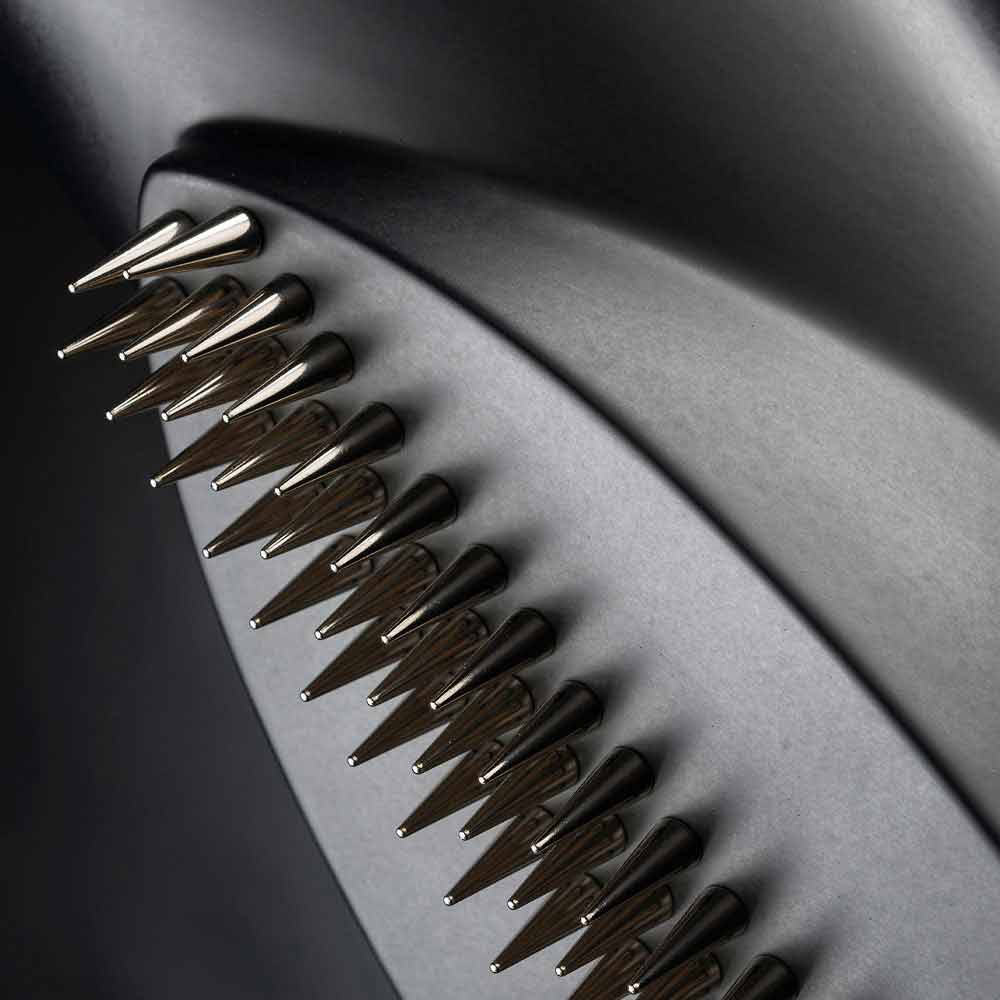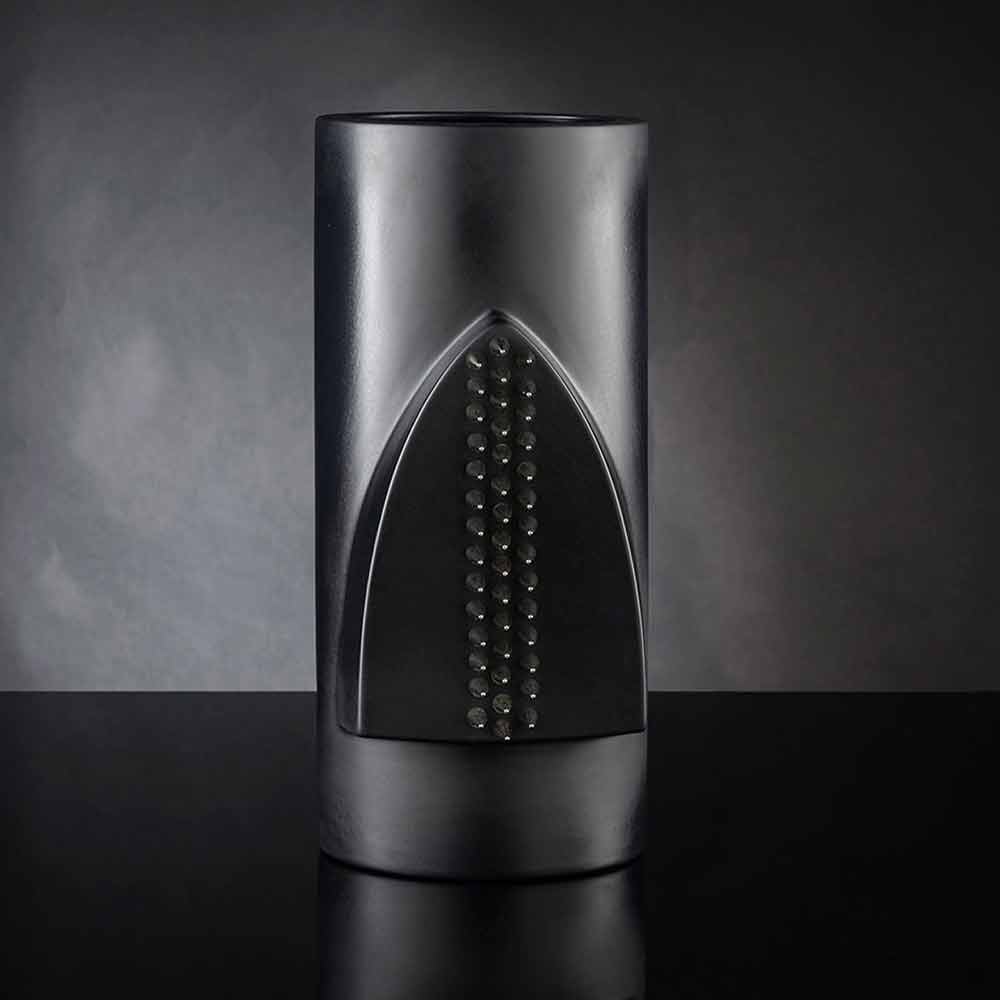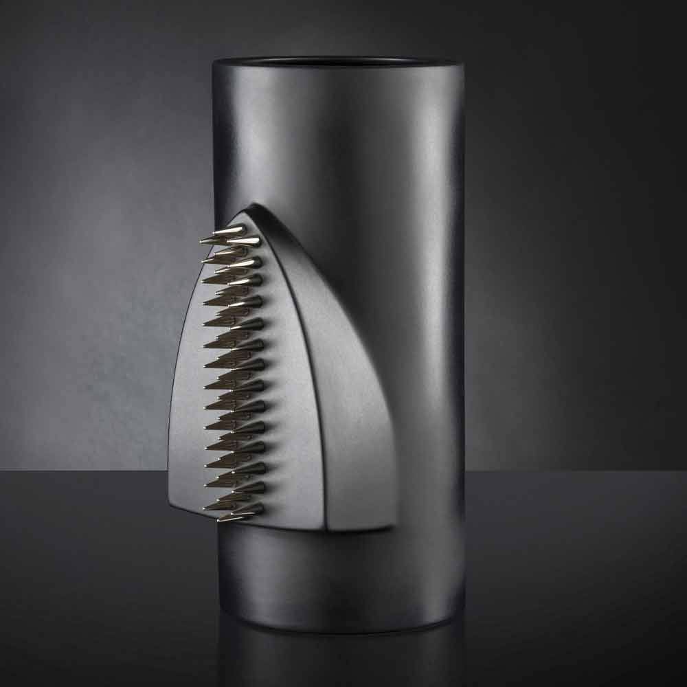 Indoor ornamental vase in matt black ceramic enriched with steel nails, made through a Made in Italy craftsmanship . From the encounter between the extreme elegance of ceramics and the modern touch of metal details, a decorative element for modern environments is born, full of personality and character, ideal for those who love to furnish their spaces with accessories with a strong scenographic impact that can help complete the look of the room creating a perfect harmony. The artisanal production represents one of its strengths as it increases and emphasizes the value and quality of the product, giving life to an exclusive and refined result . An ideal style for the most varied environments, from home furnishings to that of hotels, restaurants, contract areas, spas but also as a setting for events and weddings.