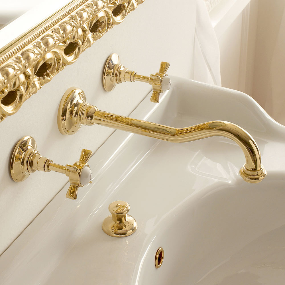 Wall-mounted faucet for washbasin or sink made in brass Katerina, made in Italy.