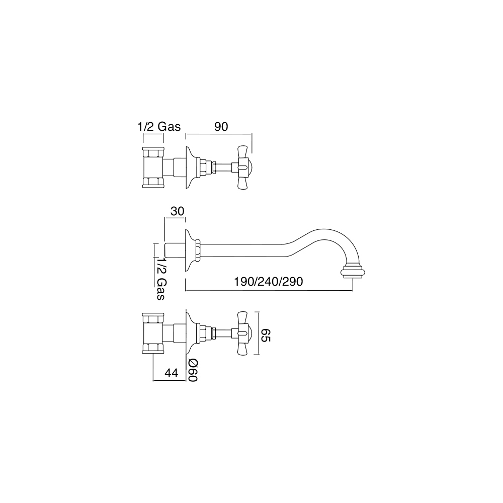 Katerina è an inimitable wall fitting for sink or washbasin, made in brass.