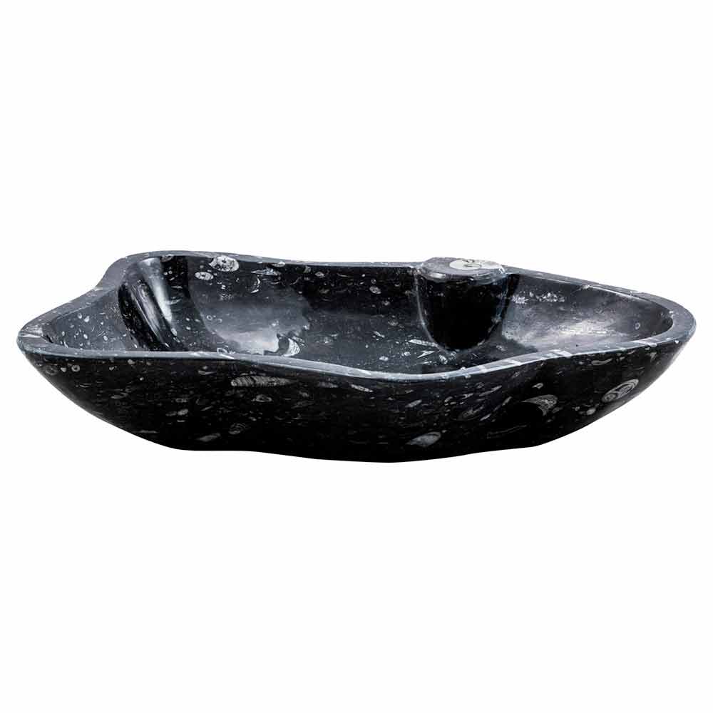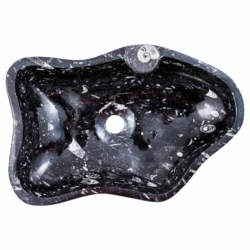 Fascinating materials and unusual shapes characterize this washbasin, made entirely by hand in marble, with fossils of millions of years set inside.
