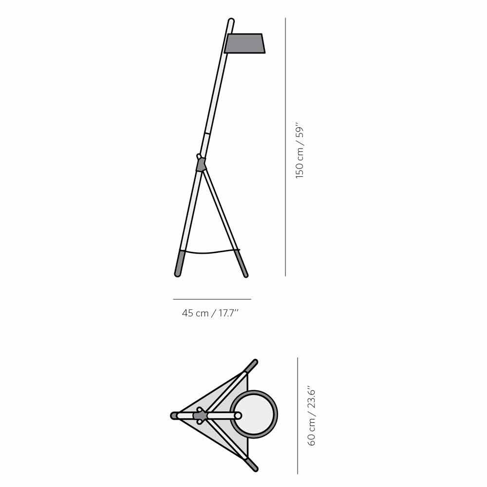 This floor lamp is to be considered as the perfect combination of functional design and modern style able to cover the more traditional role of light source of the room but also a purely decorative element able to attract attention. Its structure is composed of a three-foot base in solid beech wood held together by a vegan leather cord while the lampshade is in lacquered metal and has a 100% cotton diffuser that creates a warm and welcoming atmosphere. The lamp is also available in the variant with a practical and functional shelf also made of vegan leather, ideal for placing objects such as books or magazines to always keep at hand. The simple and minimallines that distinguish it harmonize with the materials and finishes used in order to create an innovative and elegant final product perfect for lighting and furnishing refined spaces with a modern taste.