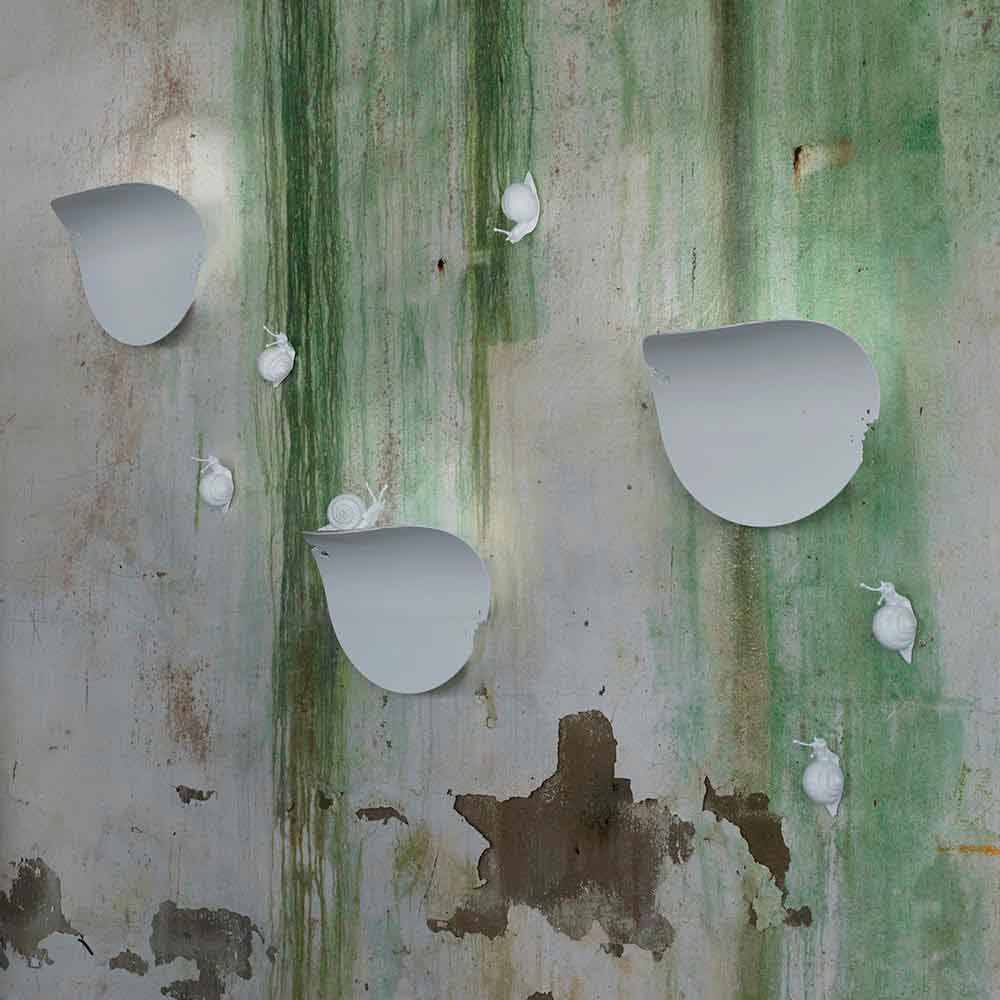The lamp is made of white aluminum while the snail-shaped accessory in opaque white ceramic, for an entirely Italian design which, through unconventional experimentation and continuous research between tradition and modernity , is able to amaze, dare and excite. allowing you to express your emotions through an original and personal decorative use of light.