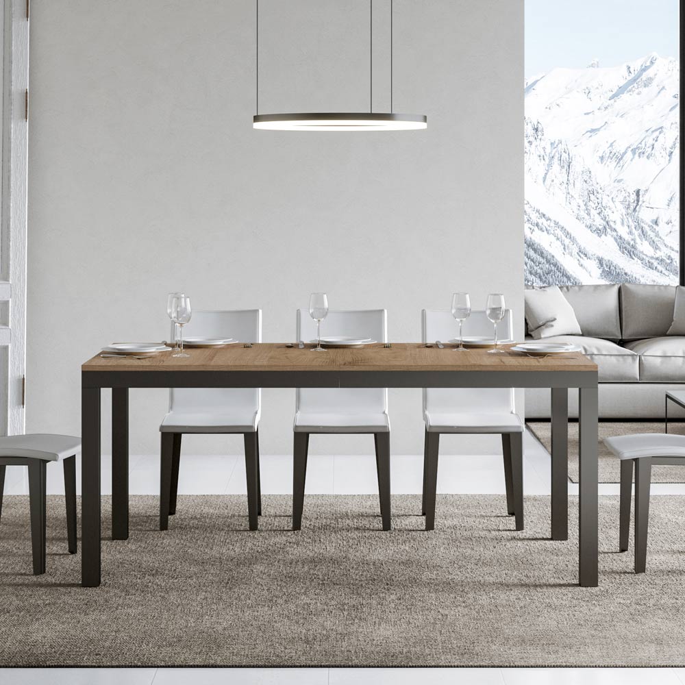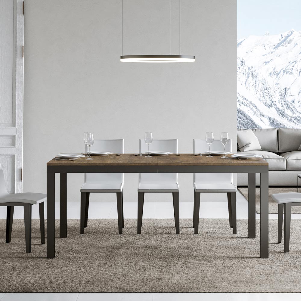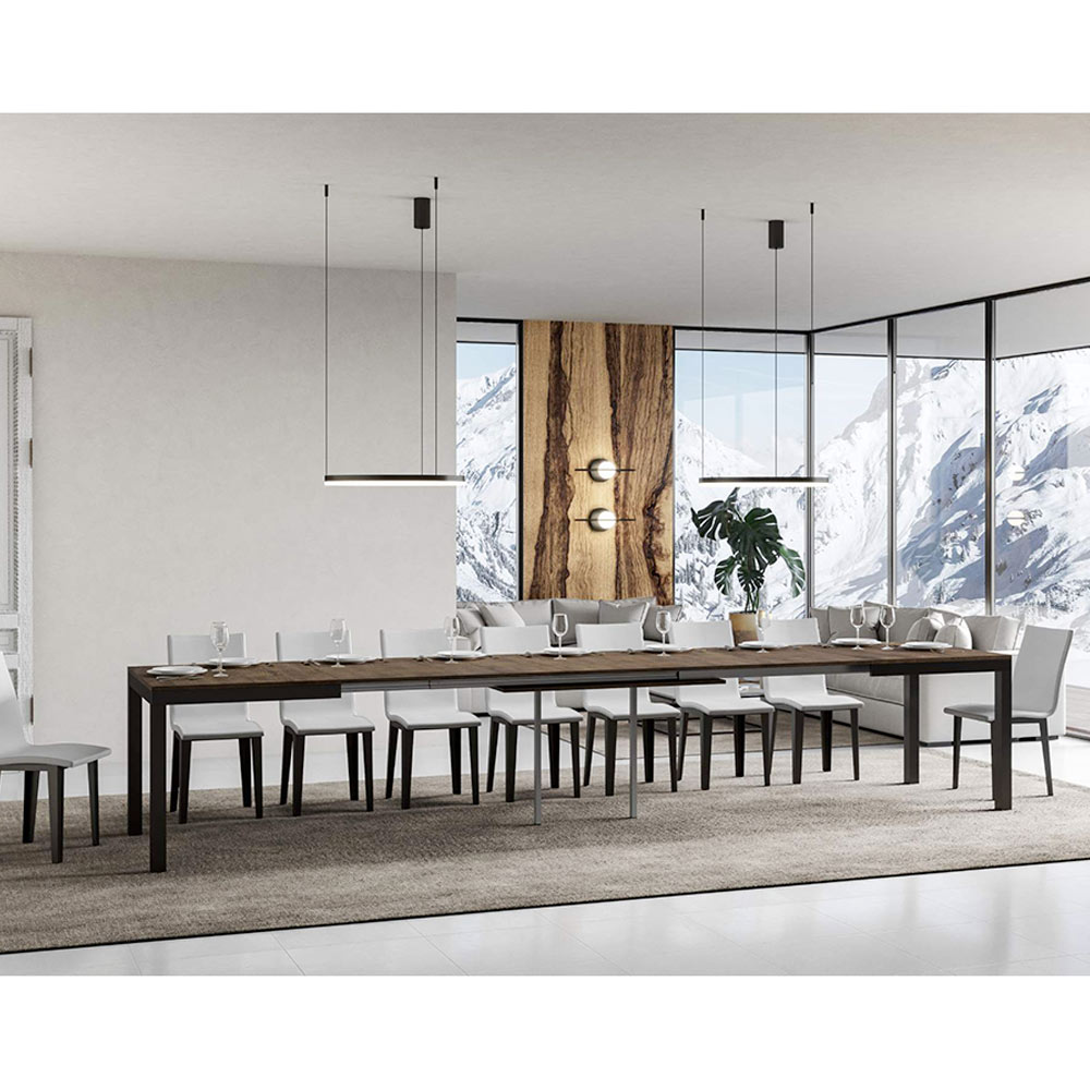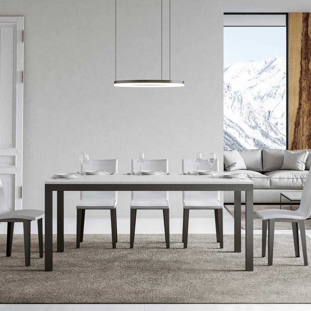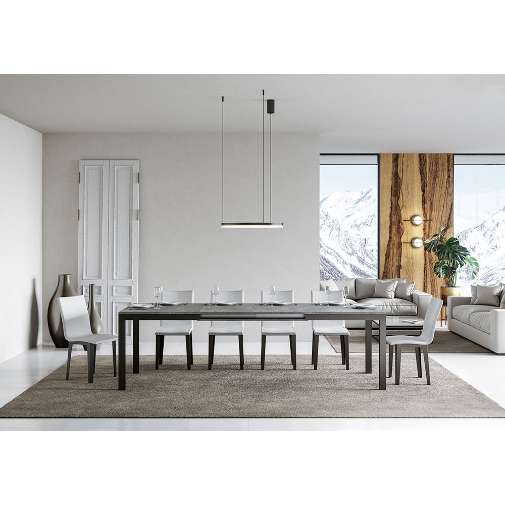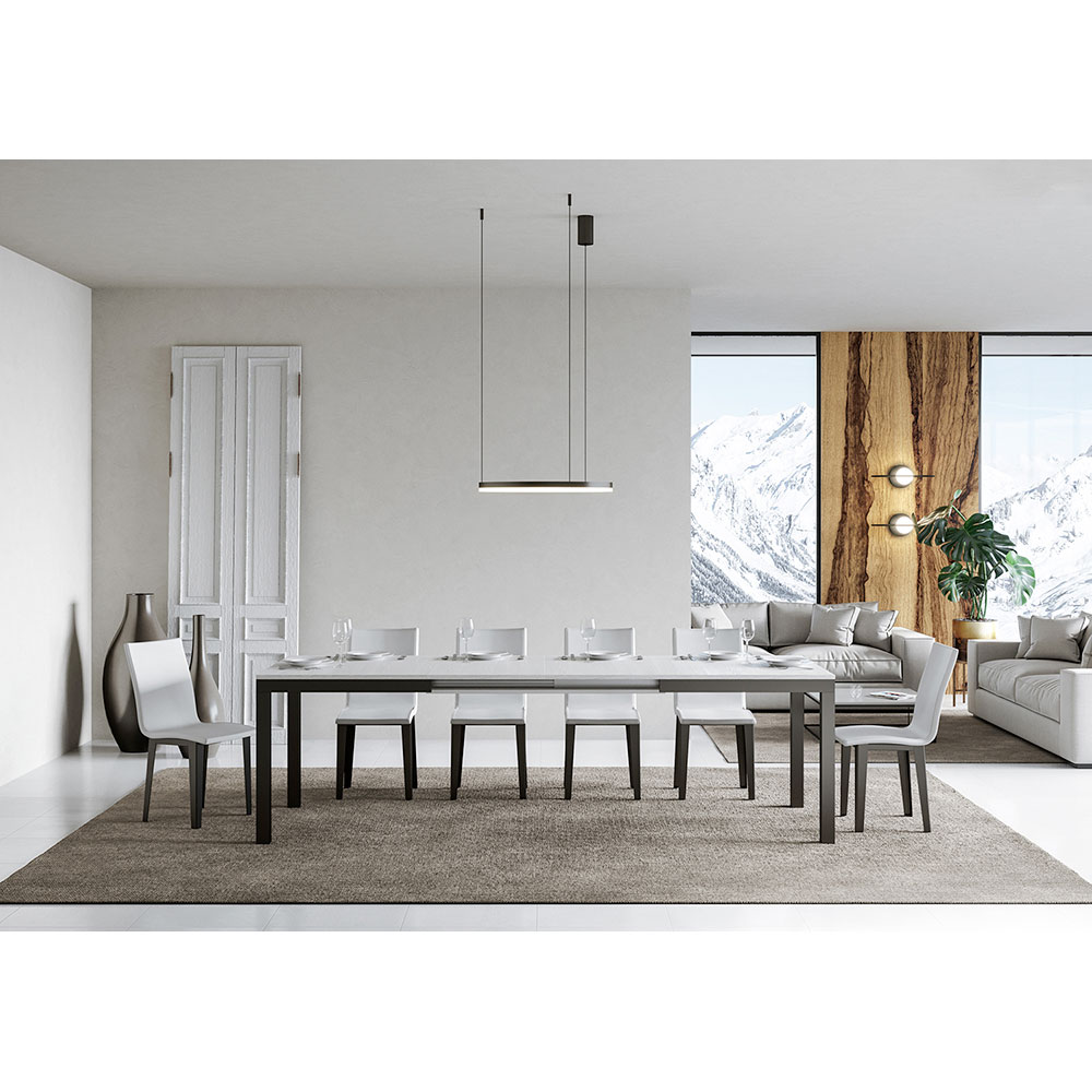 This extendable table è a perfect synthesis of discreet elegance and modern functionality. The tabletop invites people to gather around to share meals and precious moments, radiating a sense of welcome and warmth. The legs stand sturdy, ensuring stability and adding a touch of contemporary contrast.