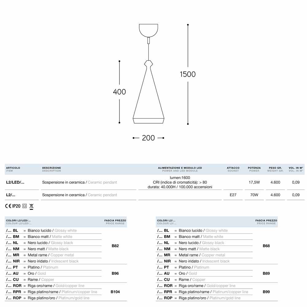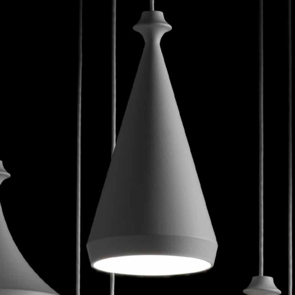 < Designer ceramic pendant lamp I Lustri by Aldo Bernardi. ILustri is available with different finishings and with socket for standard light bulb E27 or with LED light.