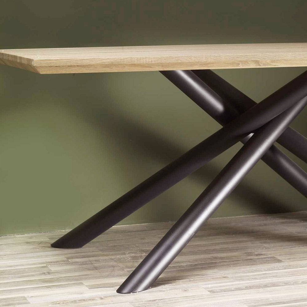 This contemporary design table is the perfect combination of elegance and functionality . The black powder-coated metal frame ensures a sturdy and stable base, enhanced by the geometric lines of the crossed legs, which give the table a touch of refined industrial style .