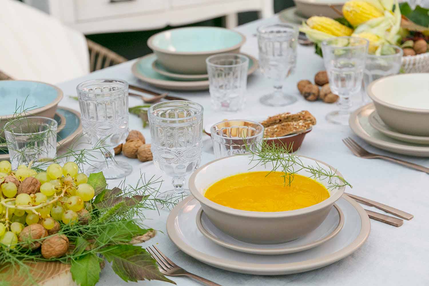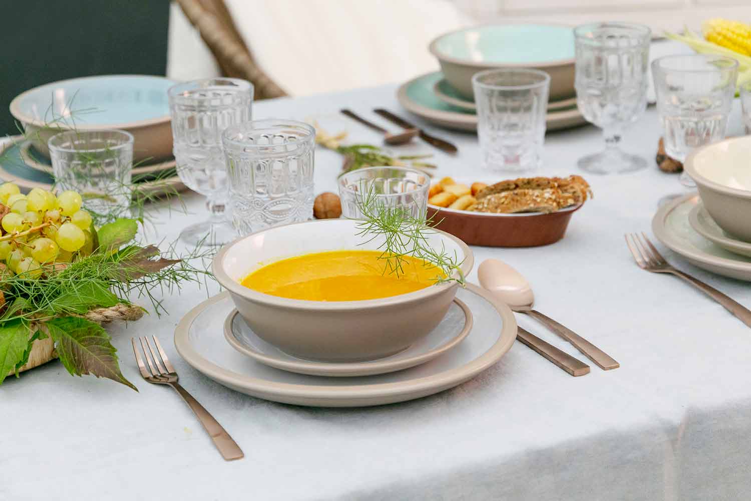 keeping the warmth of the hot dishes and create a unique harmony on the table thanks to the effects of the bright colors combined with functional shapes completed with glossy or matte finishes.