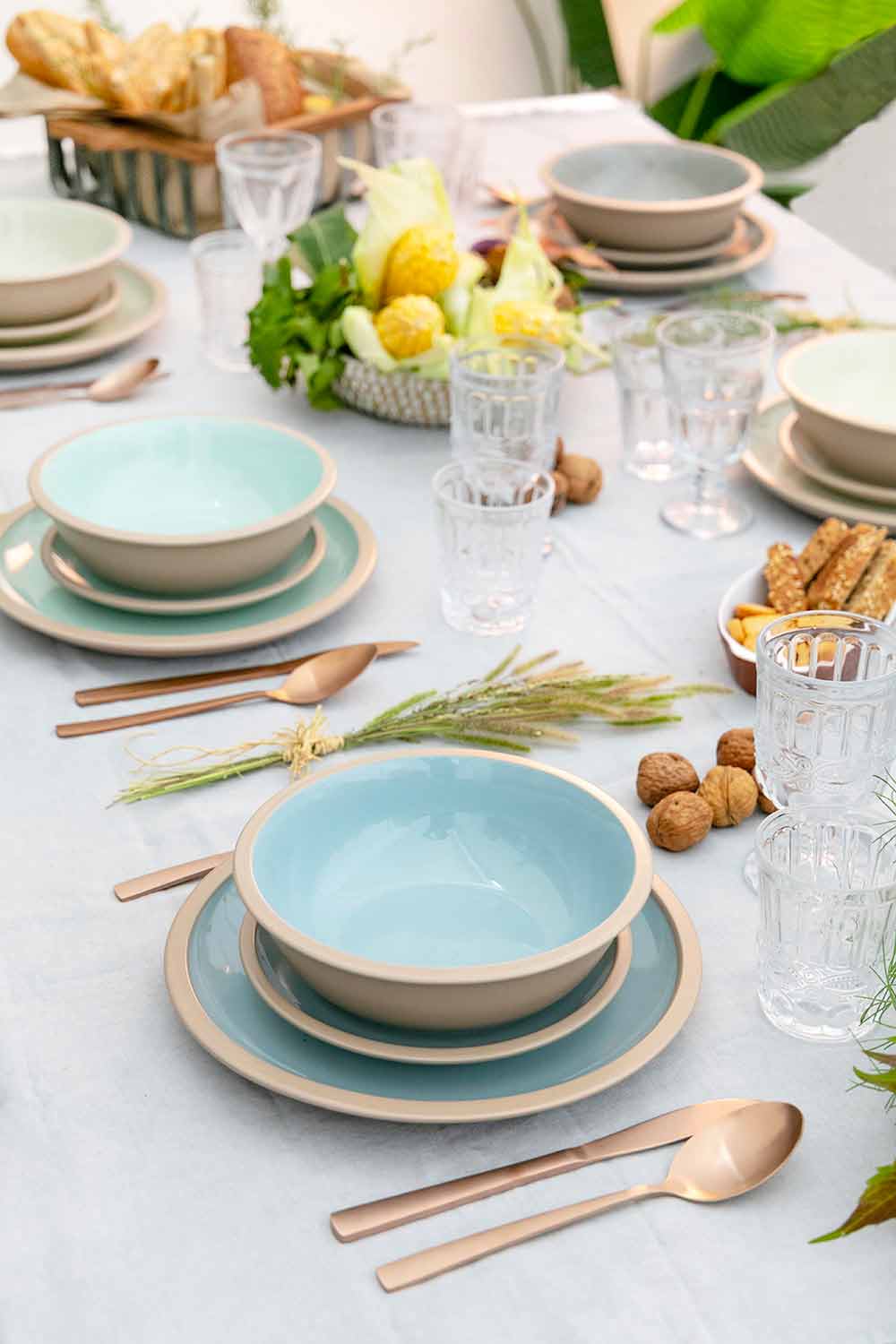 Tableware colored plates in stoneware complete with 18 pieces of design.