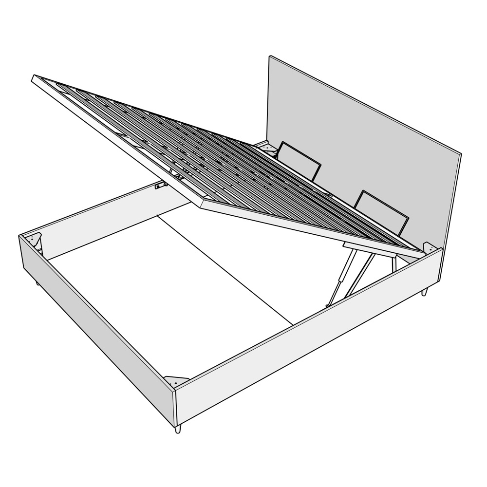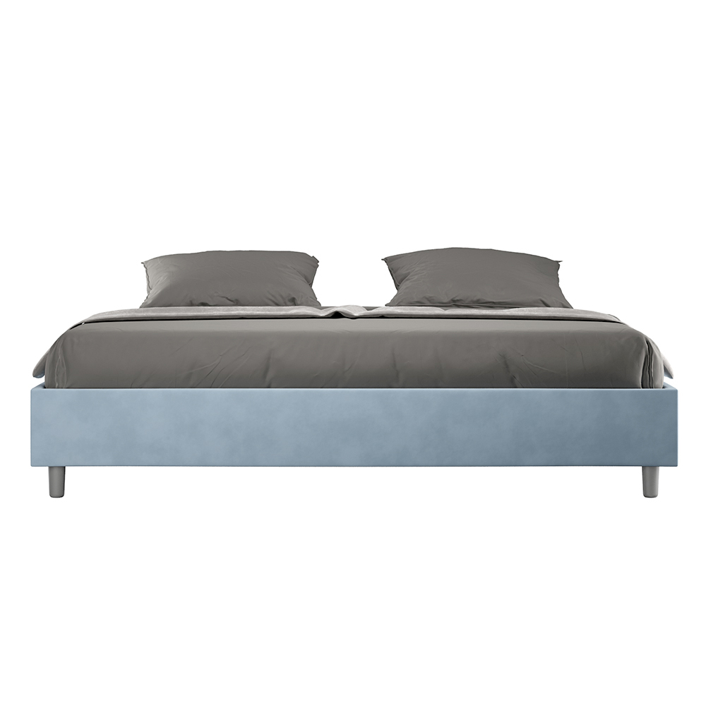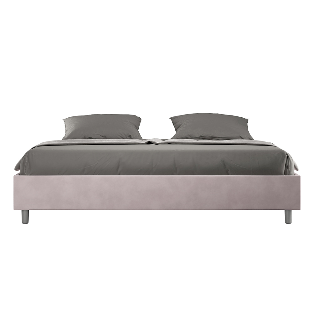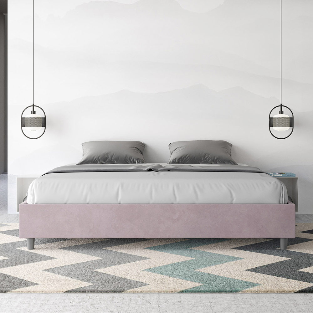 King size bed 180x200 cm padded made of melamine panels and covered in microfibre , entirely Made in Italy. This king-size bed stands out for its clean, minimalist design . Its understated aesthetic and versatility make it easy to integrate into any setting. One of its defining features is the absence of a traditional headboard , making it ideal for placement in unique spaces, such as under a window, in an attic, or near a decorative wall, without obstructing the view or achieving the desired effect.
