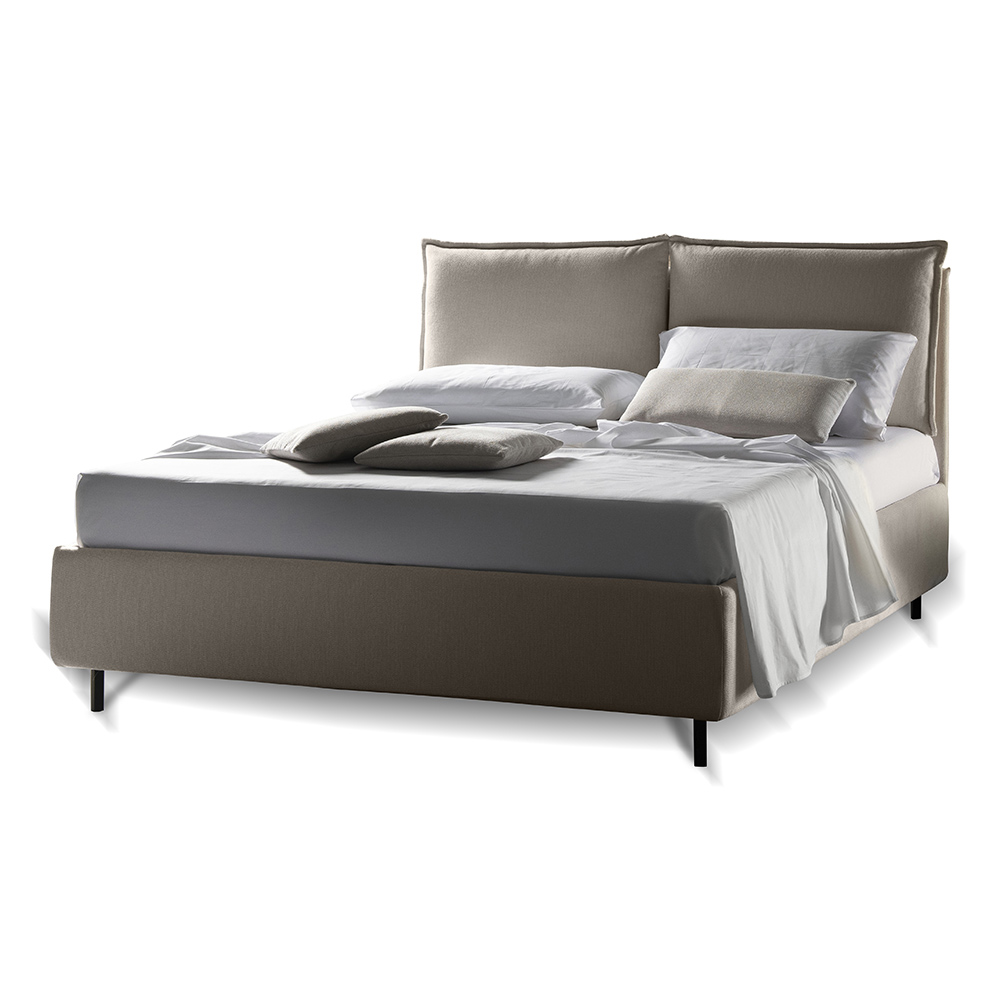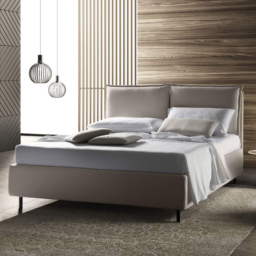 contemporary idea of comfort that arises from the desire to create a furnishing solution that is as functional as it is elegant and modern. The simplicity of the bed frame and metal feet together with the originality of the headboard gives the aesthetics of the product a