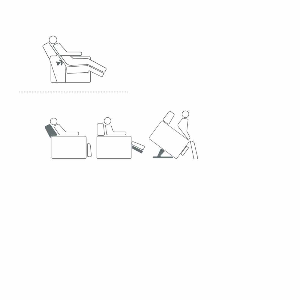 Total Relax Position (Bed) : allows total relaxation reaching the function of the bed with the complete opening of the backrest, seat and footrest