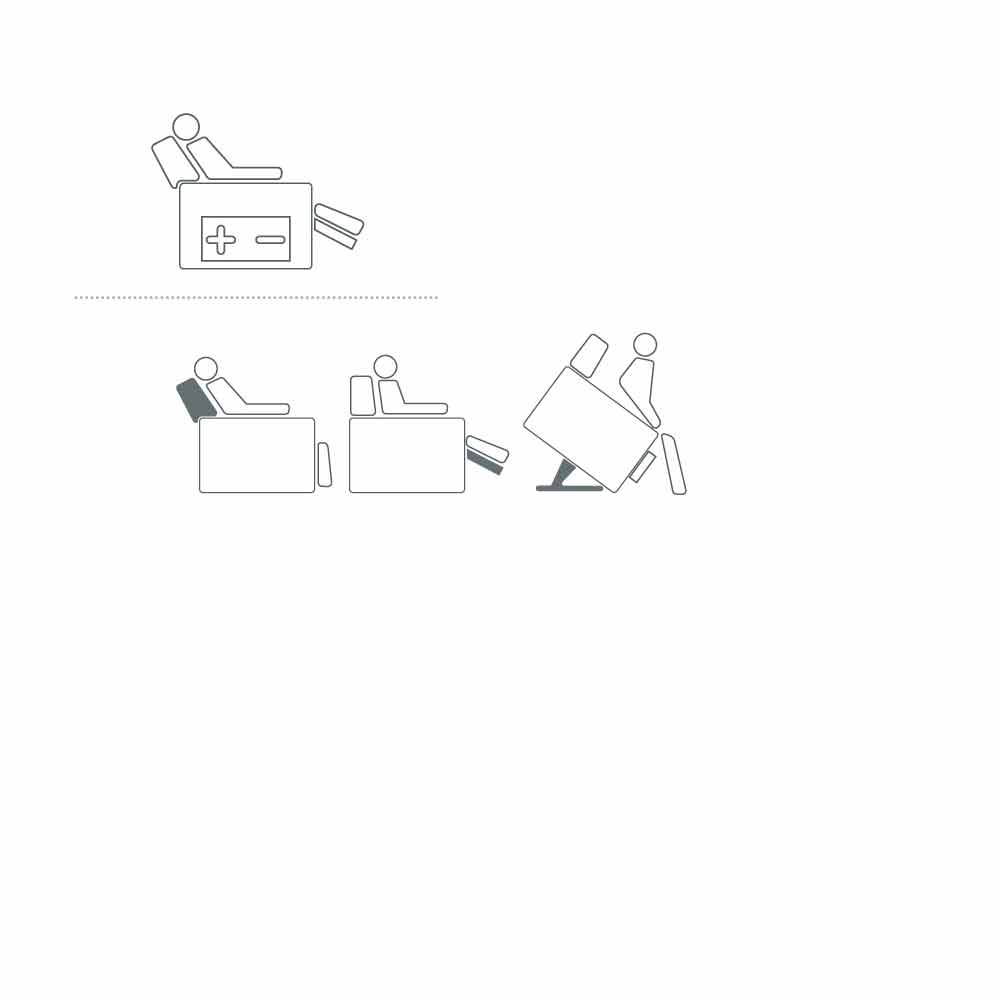 - 60-cycle battery kit: allows the armchair to be used in any corner of the house, even away from the power outlet. The battery allows 60 complete cycles of autonomy. Attention: the battery kit is not compatible with the options Lumbar support / Vibro Kit / Thermo Kit.