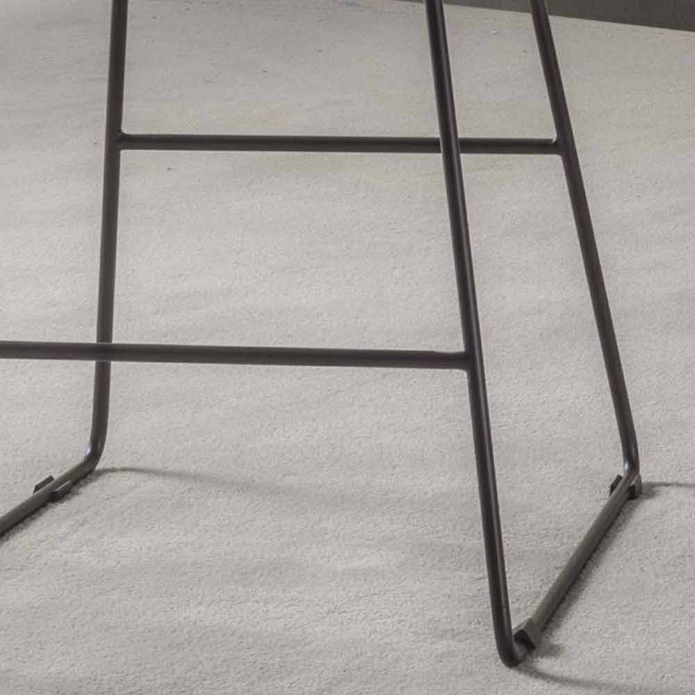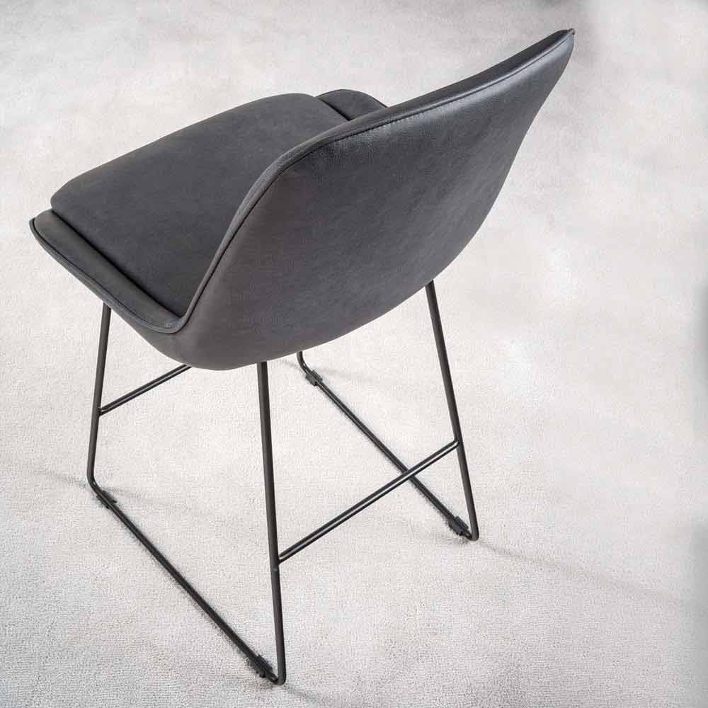Its peculiarity is the sled base, made of painted metal. While the seat is in nubuck eco - leather with a smooth back.