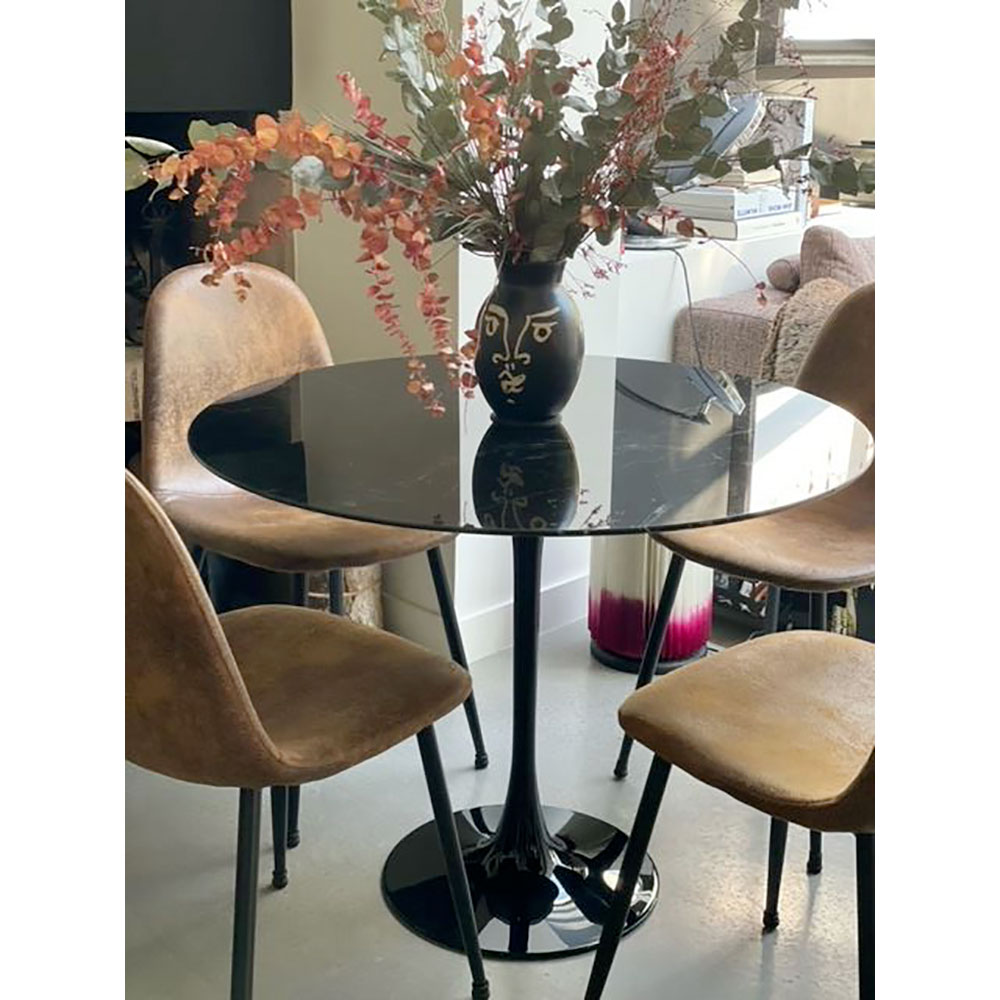 Round dining table with topin black marquinia marble and polished aluminum base entirely made in Italy. This product expresses a design based on functionality and simplicity perfect for furnishing all environments. Its elegant and sophisticated finishes make it an element to complete with taste and personality the living and kitchen environments. The black marquinia marble top and the polished aluminum base give quality and resistance netempo combined with a touch of uniqueness and practicality. This table allows you to give the room a unique impact guaranteed bymade in Italy.
