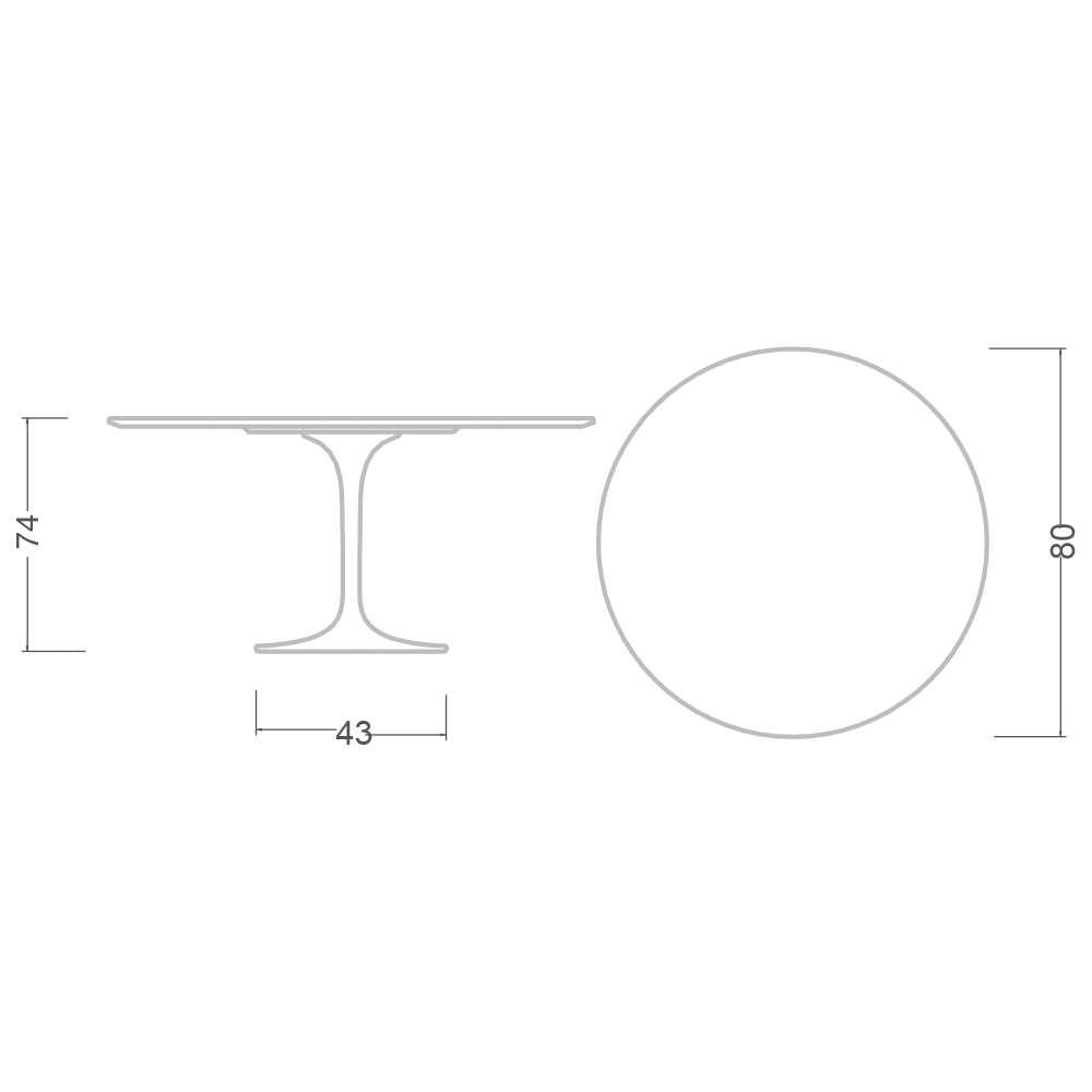 Table top diameter 80 x height 74 cm;