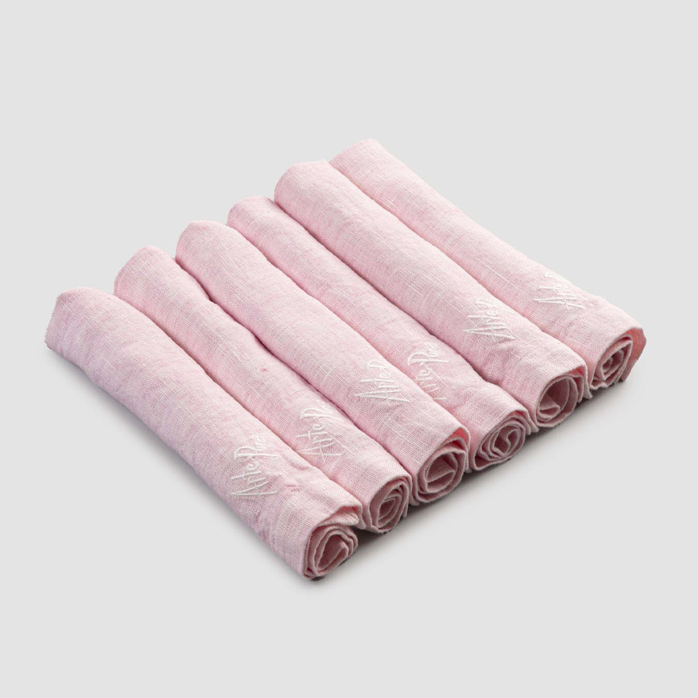 Heavy colored linen napkin set with folded edge, 6 luxury pieces made in Italy.