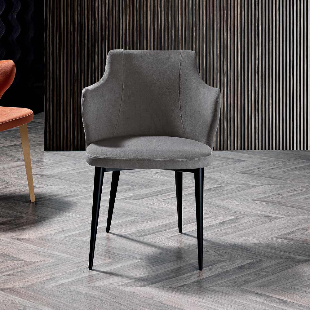 Transform your dining room into a more comfortable and elegant space with the modern armchair with a seat covered in easy-to-clean crystal fabric and available in different color variants:
