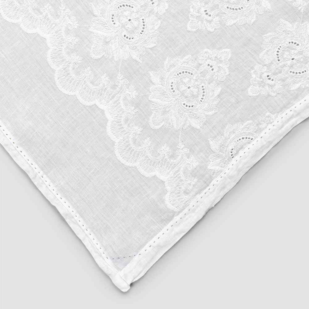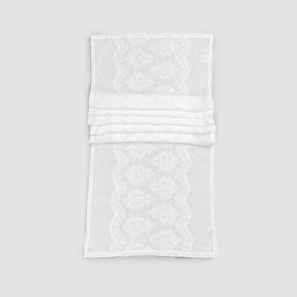 Pure linen table runner with cotton embroidery, luxury elegant design made in Italy.
