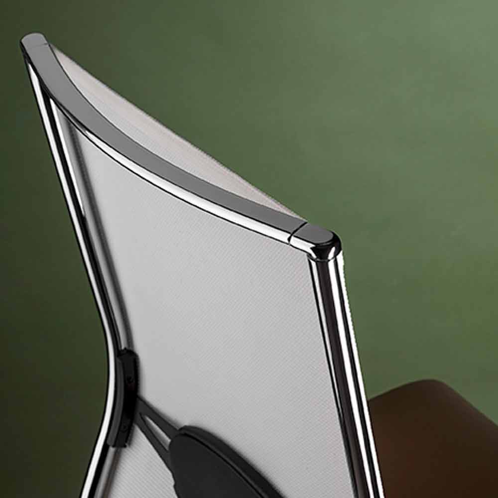 Made with a swivel steel structure and with wheels with shiny chrome finishes, the elastic net of the backrest and the innovative system of protected springs inside the seat create a symbiosis of comfort and elegance.