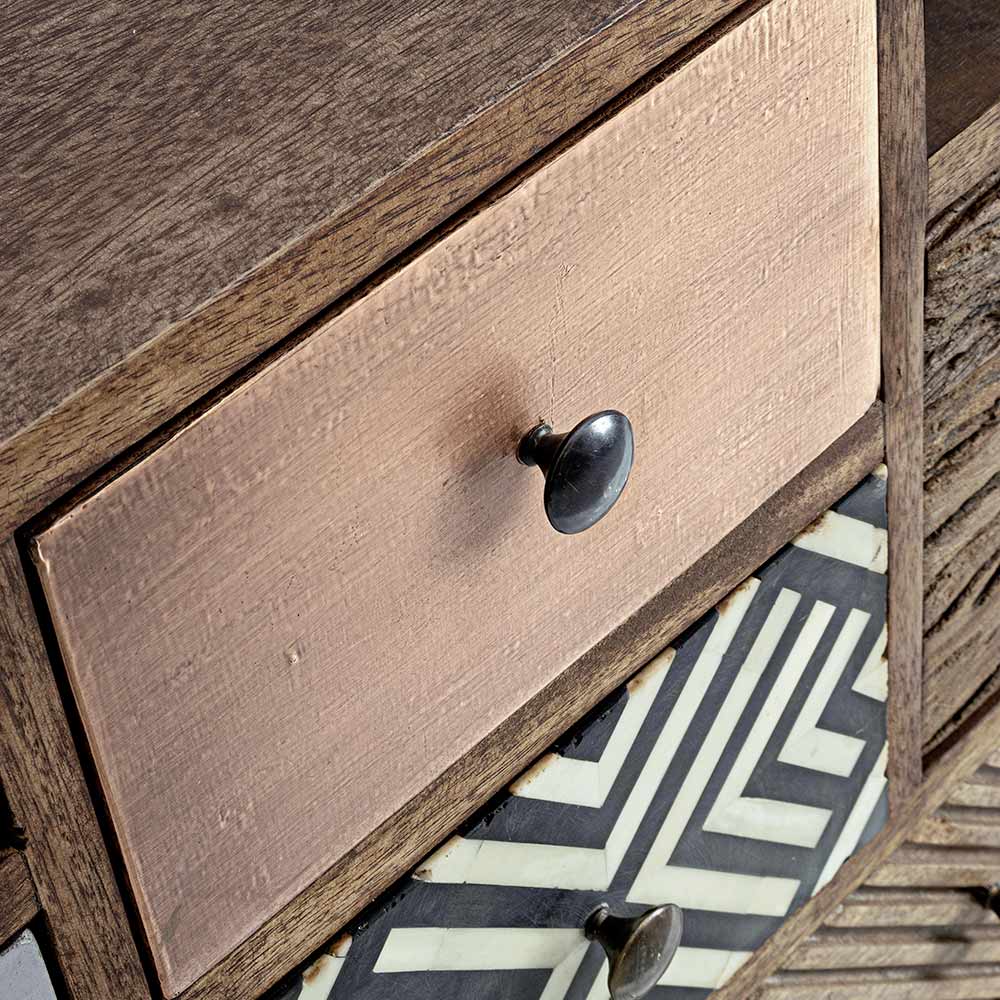 Sideboard in recycled mango and acacia wood with 2 doors and drawers of ethnic design.
