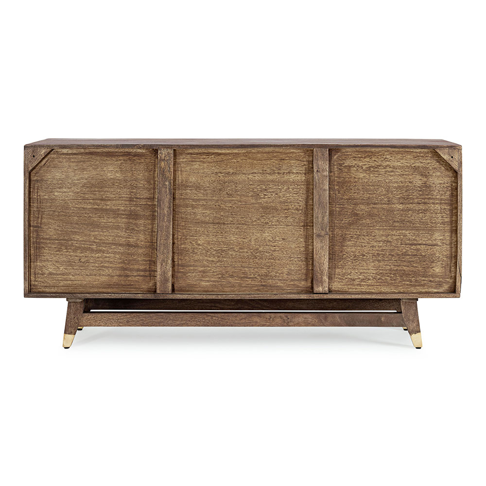 This design sideboard for the living room has a mango woodstructure and MDF backrest with steel handles.