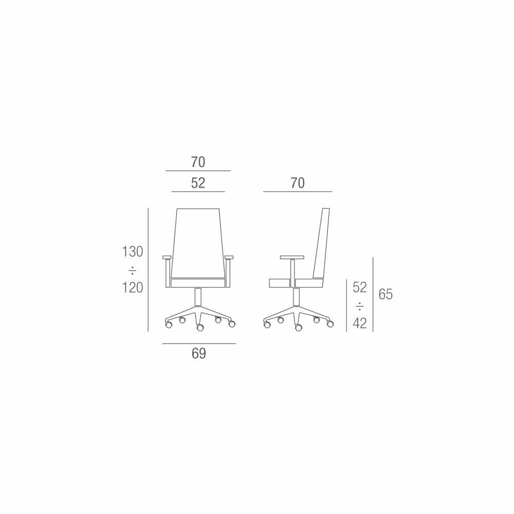The 5-star base is made of polished die-cast aluminum, complete with braked Ø 50 mm nylon wheels.