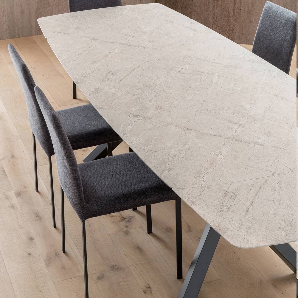 Thanks to the integrated extension system with lateral extensions , the table extends easily, ensuring maximum flexibility on every occasion, from daily lunches to meetings with numerous guests.