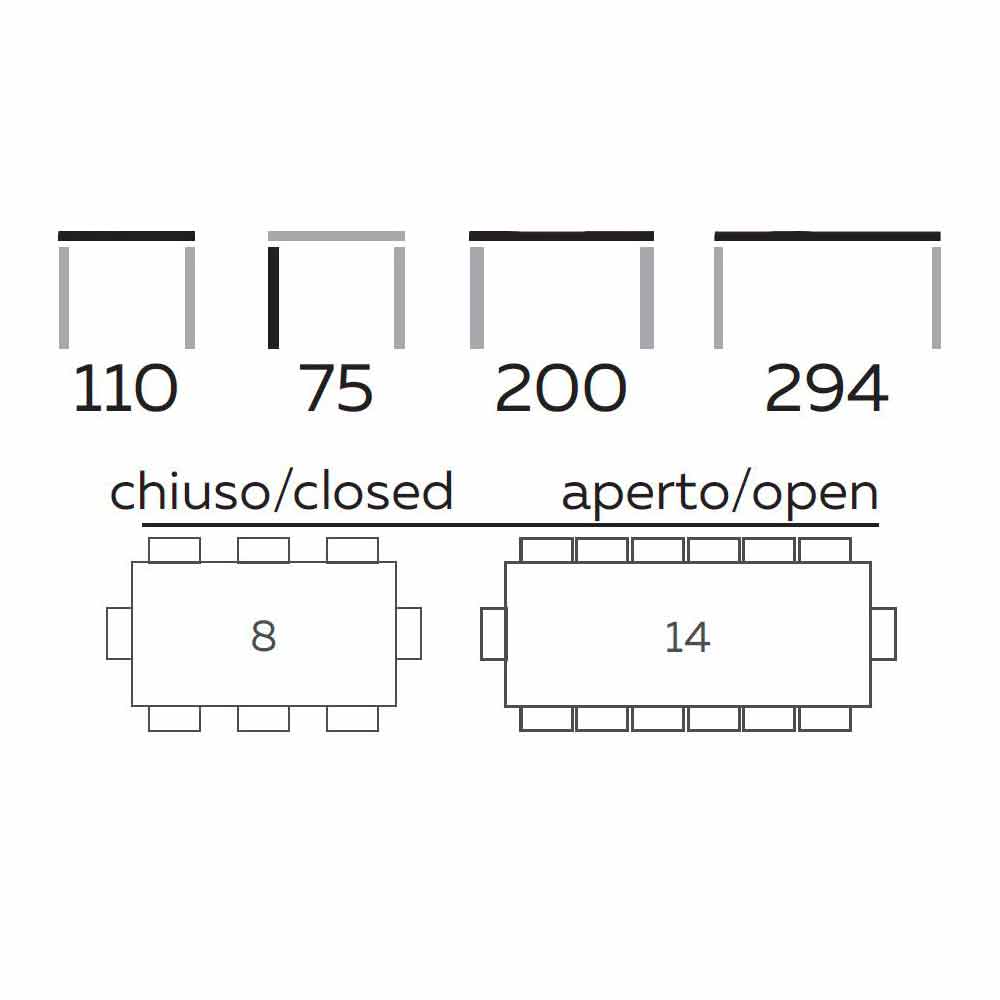This Made in Italydining table is characterized by an innovative and elegant design thanks to the combination of materials and finishes used which makes it an ideal product for environments with a modern and refined style. The peculiarity of the table is undoubtedly given by the unusual structure of the two painted metal legs that do not rest entirely on the ground but only on two points, thus increasing the charm of the product. Due to its shape, the base seems light and slender but in reality it proves to be sturdy and stable, managing to support the weight of the top made of 2.5 cm thick veneered wood which, thanks to the presence of 2 removable 47 cm extensions, can reach a length of 294 cm allowing it to accommodate up to 14 people for lunches and dinners with friends.