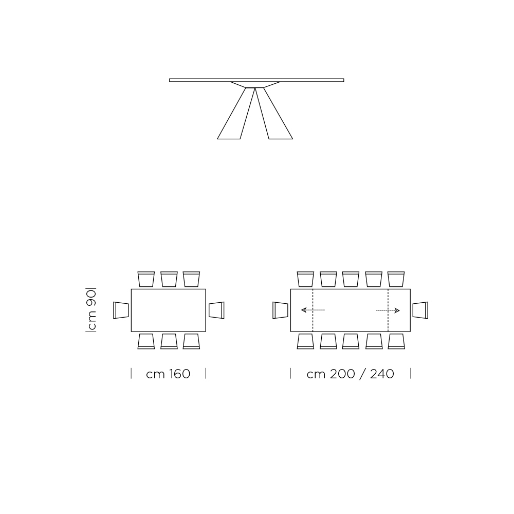 • L 160/240 x D 90 x H 75.3 cm 12 seats (2 extensions of 40 cm);
