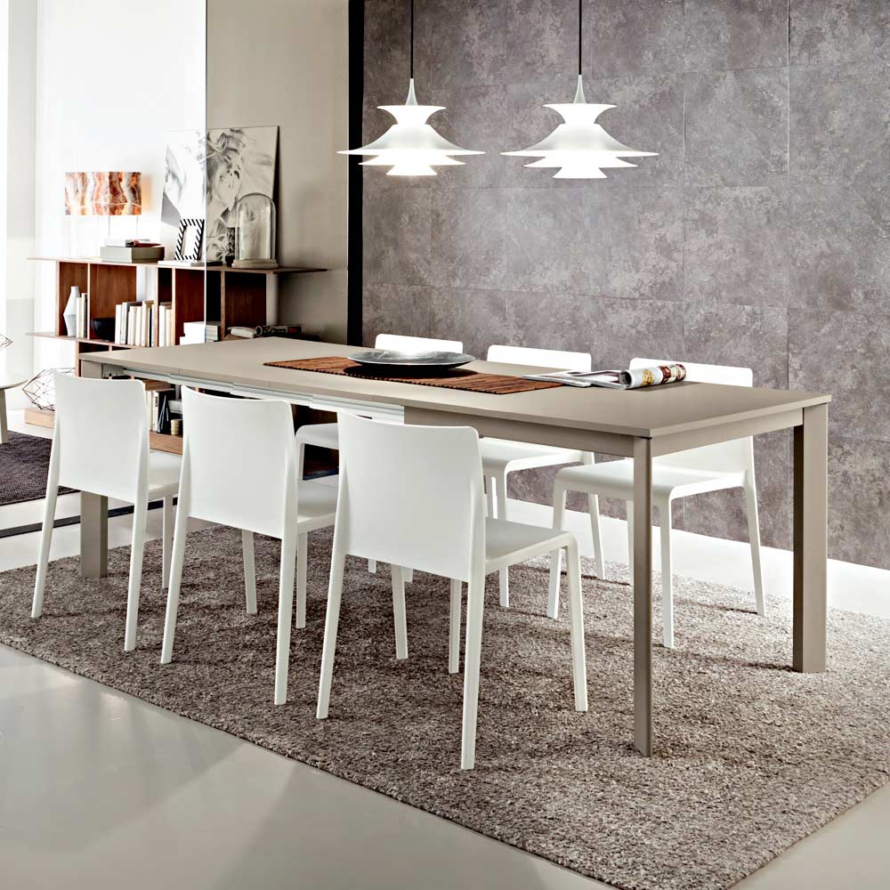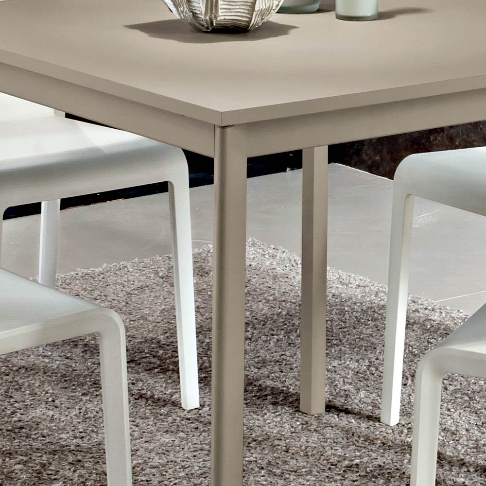 aluminum base lacquered with epoxy powders matching the top. A modern solution that bases its idea on the concept of functionality to offer a large table even to those who have small spaces available but don't want to give up welcoming friends and relatives for wonderful moments in company.