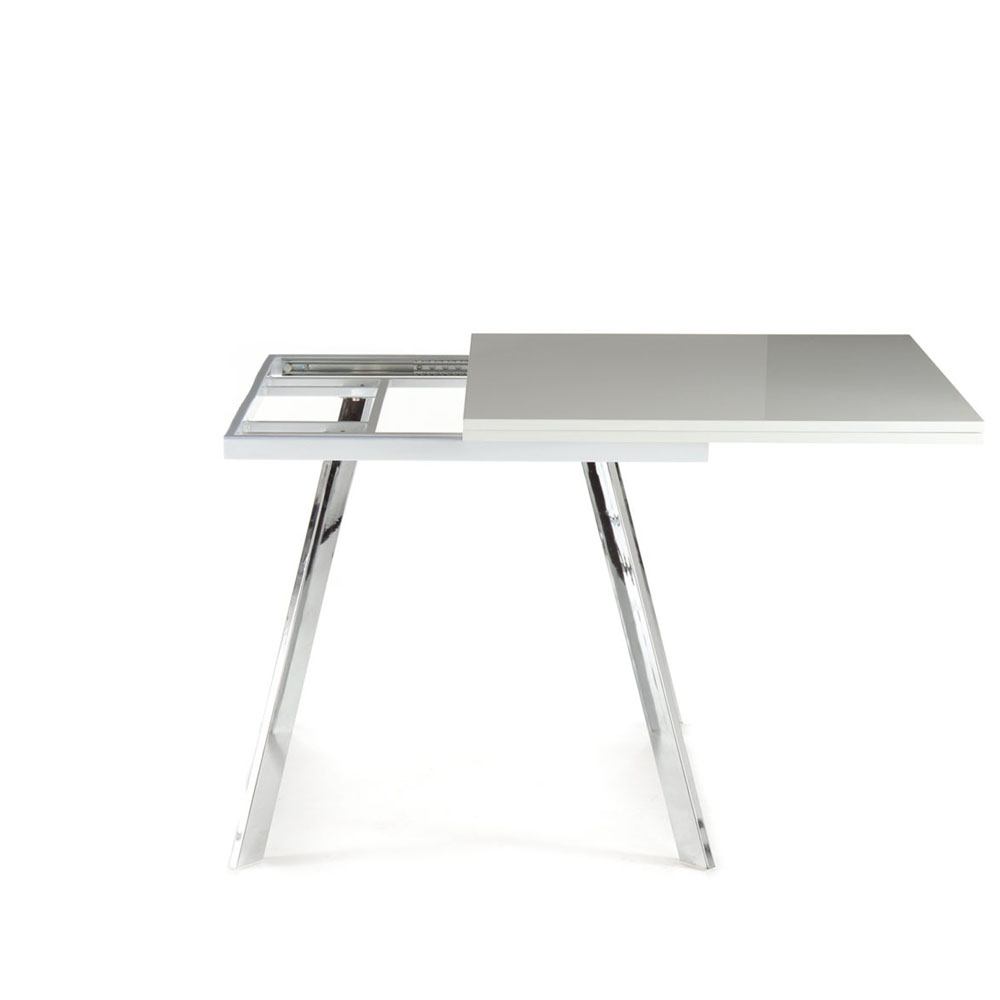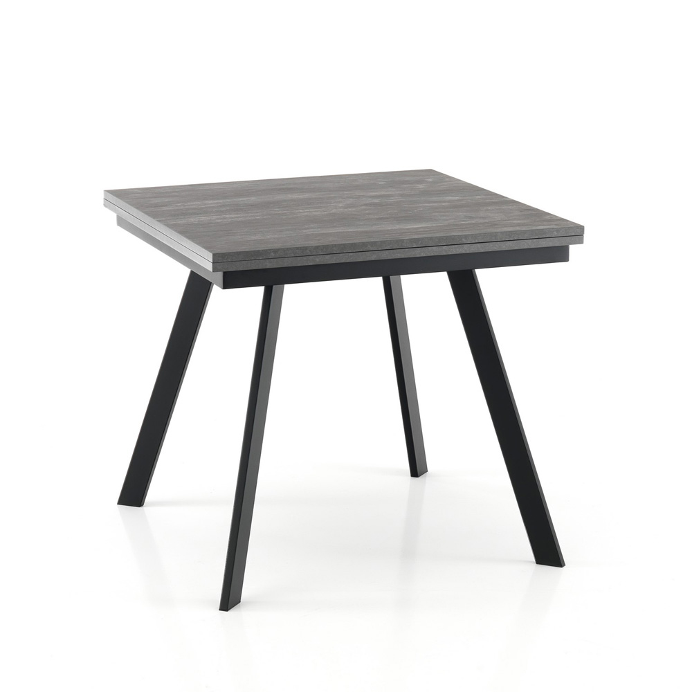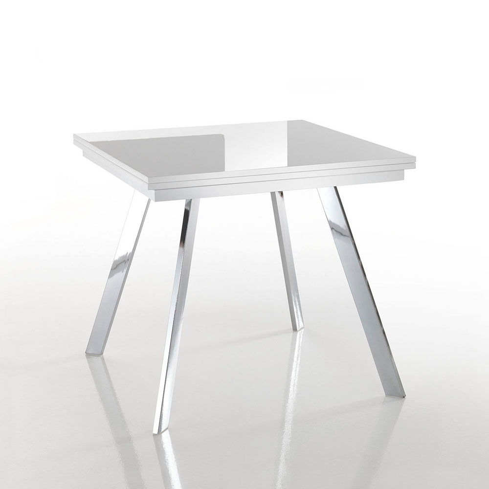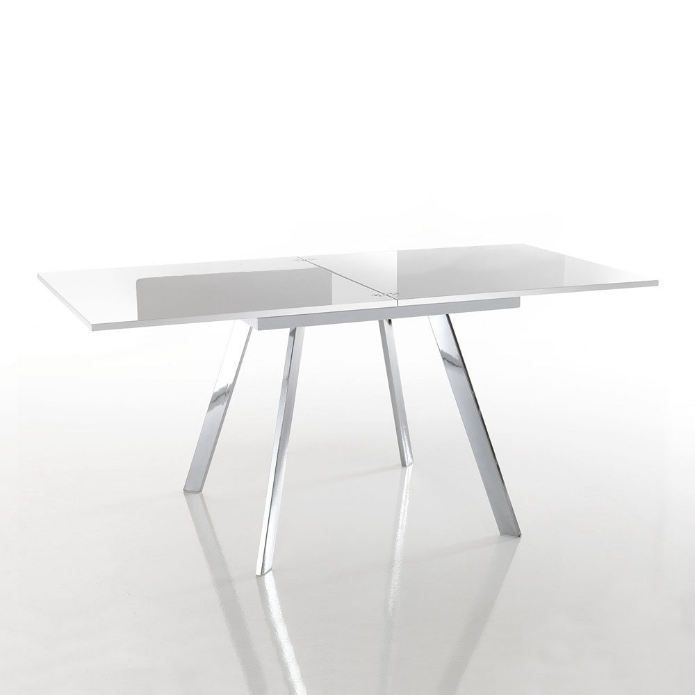 Extendable indoor folding table with top made of MDF and legs in metal or steel. This product is the perfect idea for all those who want to give a touch of modernity and freshness to the room, be it a living room, a kitchen or a contract environment. The materials chosen for construction are top quality to guarantee the customer a table that is not only beautiful to look at but also functional and resistant.