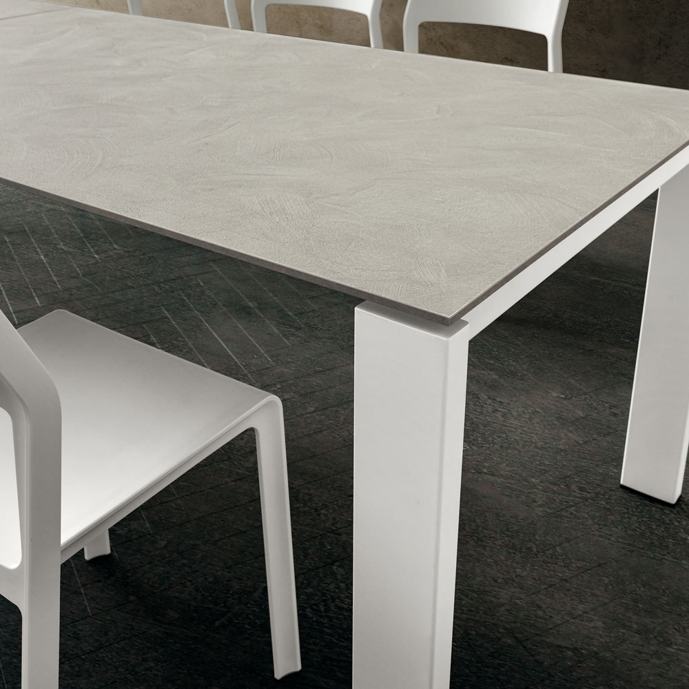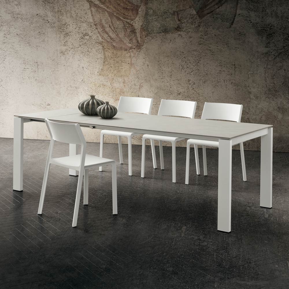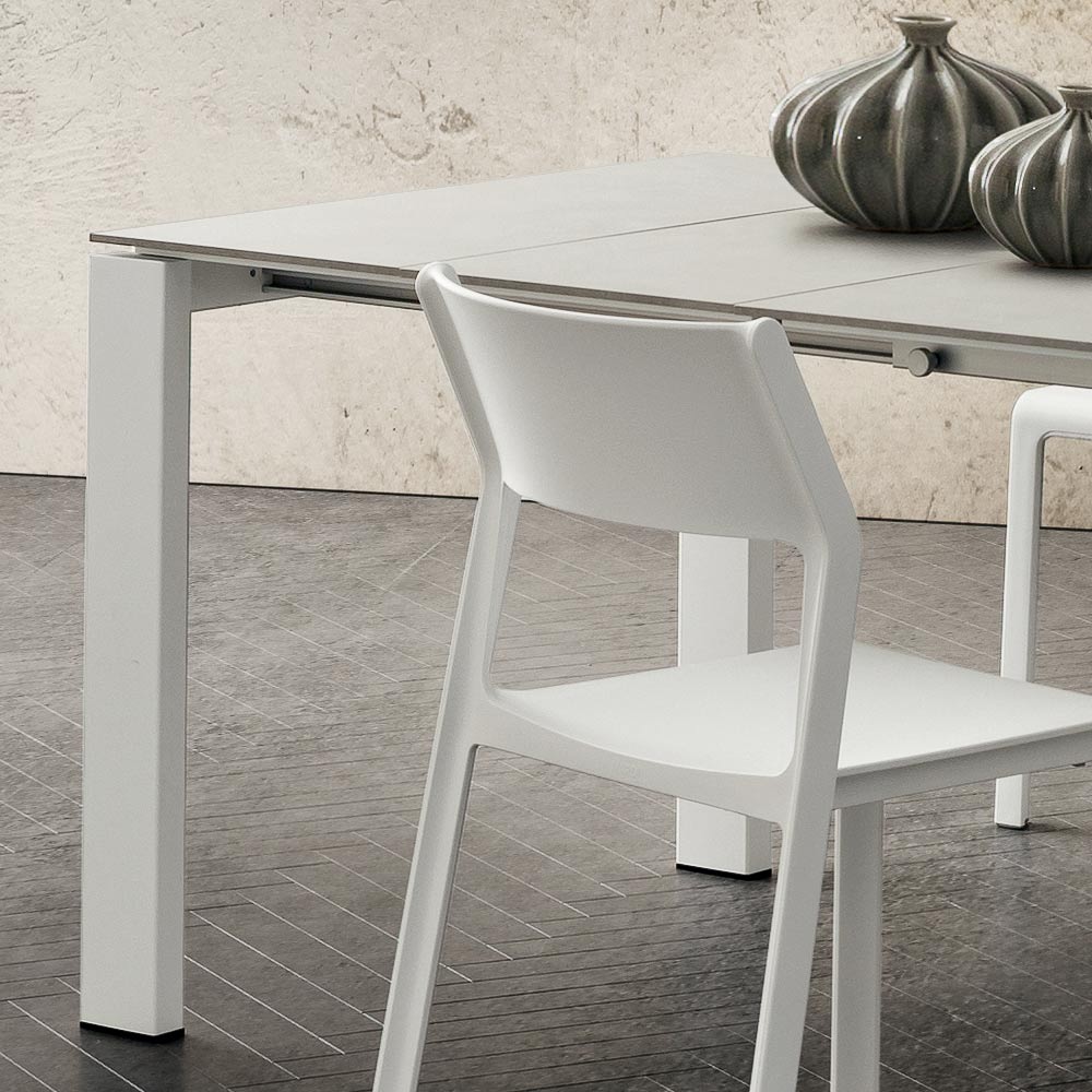 Extendable dining table in high-quality Made in Italy hpl and white lacquered metal.