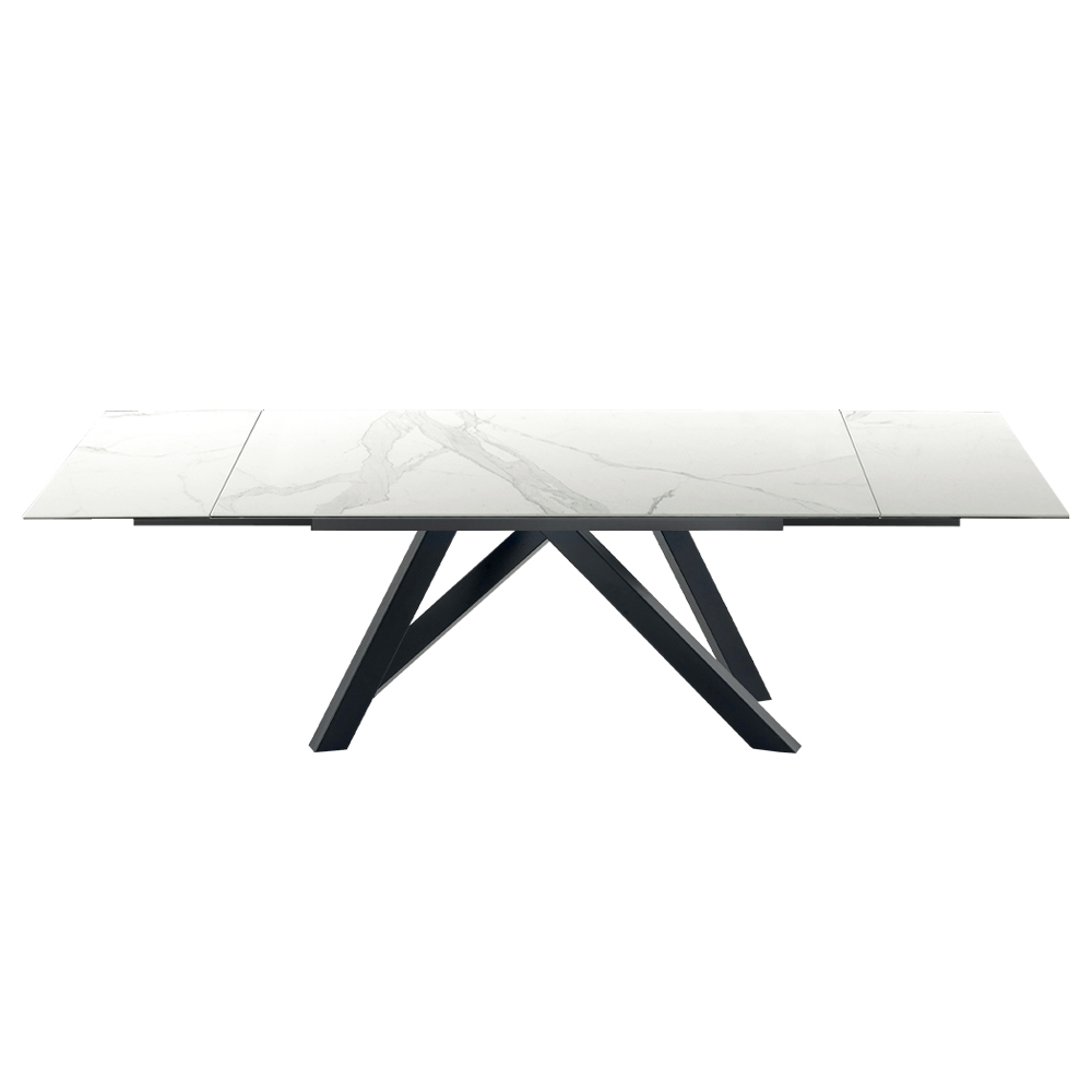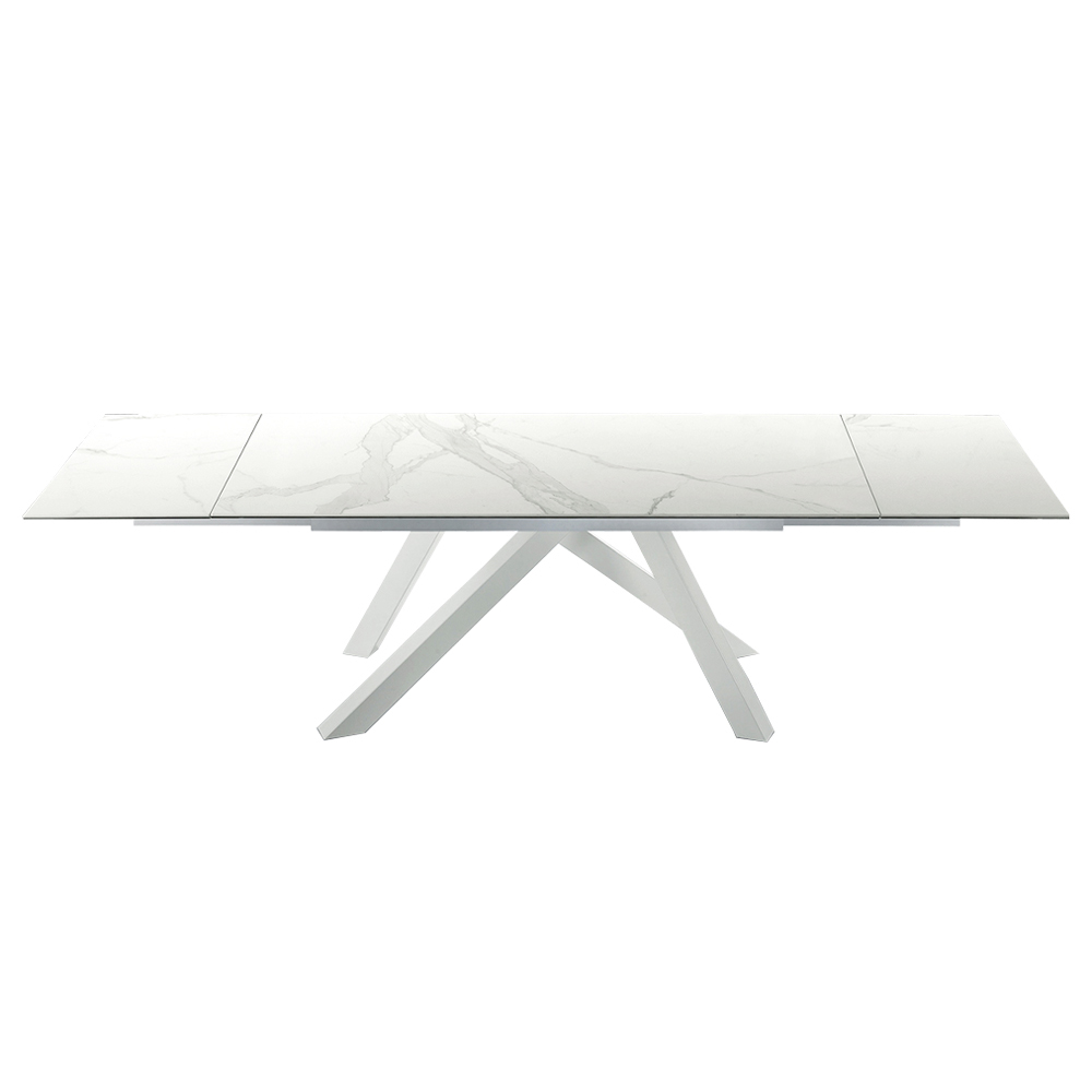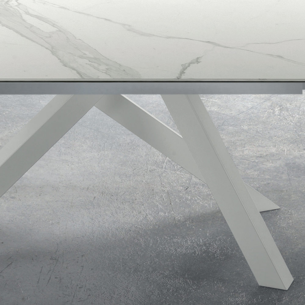 Laminam table extendable up to 278 cm with white or graphite steel base, produced in Italy.