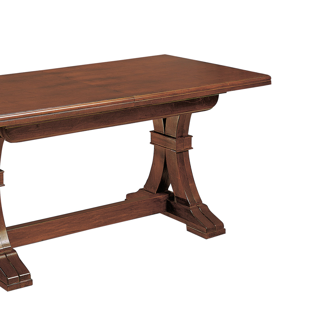 Extendable living room table in solid wood , MDF veneered chipboard panels, Tanganyika/toulipier veneer, wood particle panels   with 4 extensions of 45 cm each entirely Made in Italy.