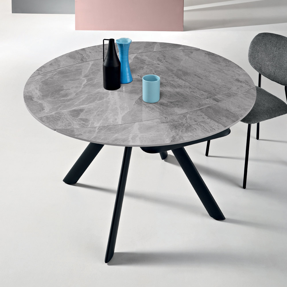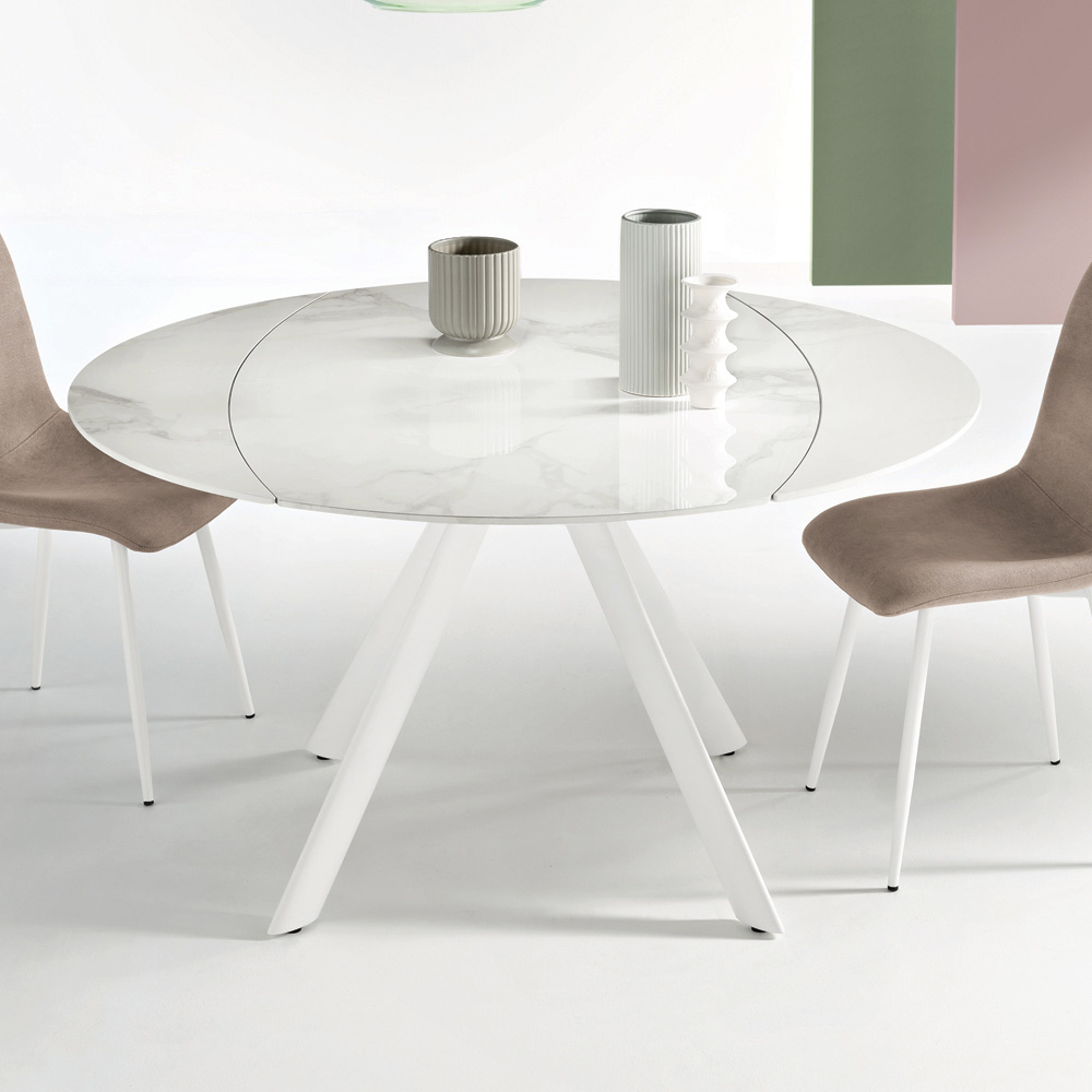 Elegant extendable dining table designed to stylishly furnish your living room or dining room . The marble-effect sintered stone top offers a durable, refined, and easy-to-maintain surface, perfect for everyday use.