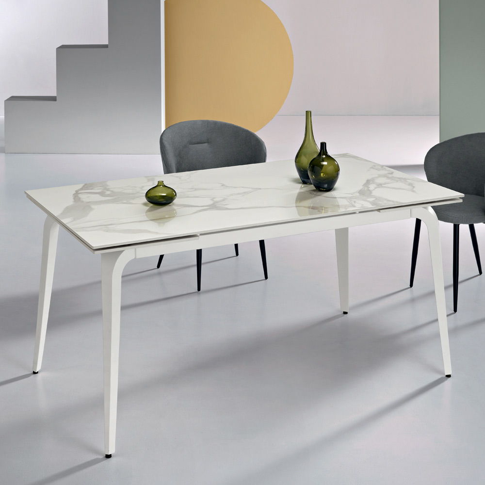 Extendable dining table with a modern design, ideal for elegantly furnishing the living room or dining room . The top is made of marble-effect sintered stone , a durable and easy-to-maintain material that enhances any space with a contemporary touch.