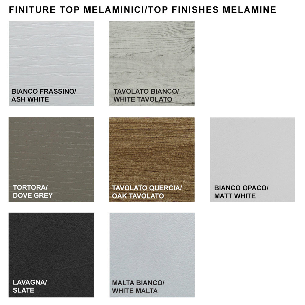 Characterized by a melamine-coated wooden top Ā  and a base in melamine-coated wood .