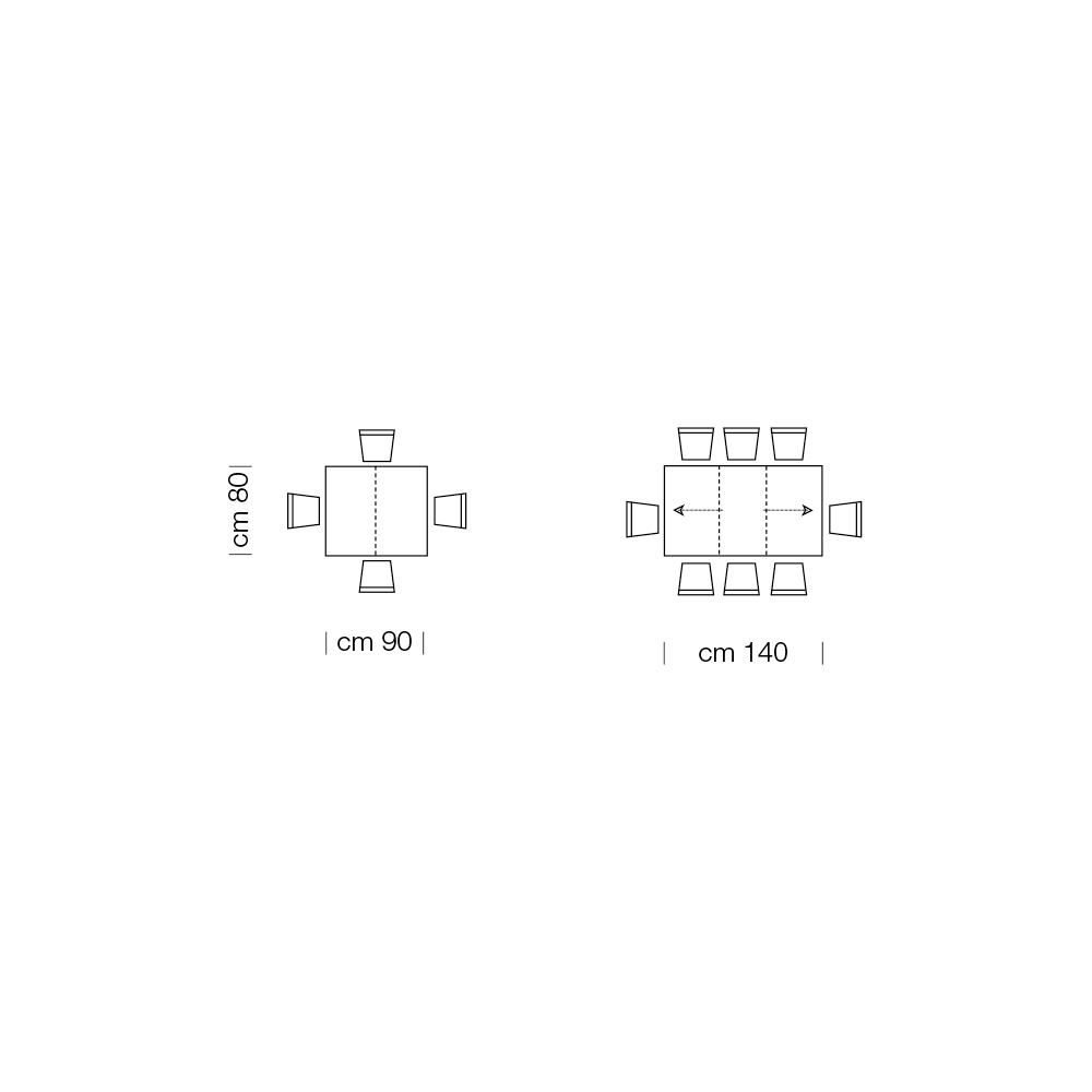 • L 90 (140) x D 80 x H 77 cm 8 seats extendable with an internal 50cm extension;
