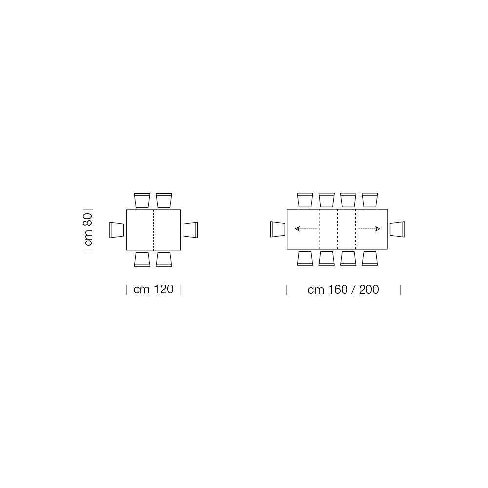 • L 120 (200) x D 80 x H 77 cm 10 seater extendable with two 40cm internal extensions;