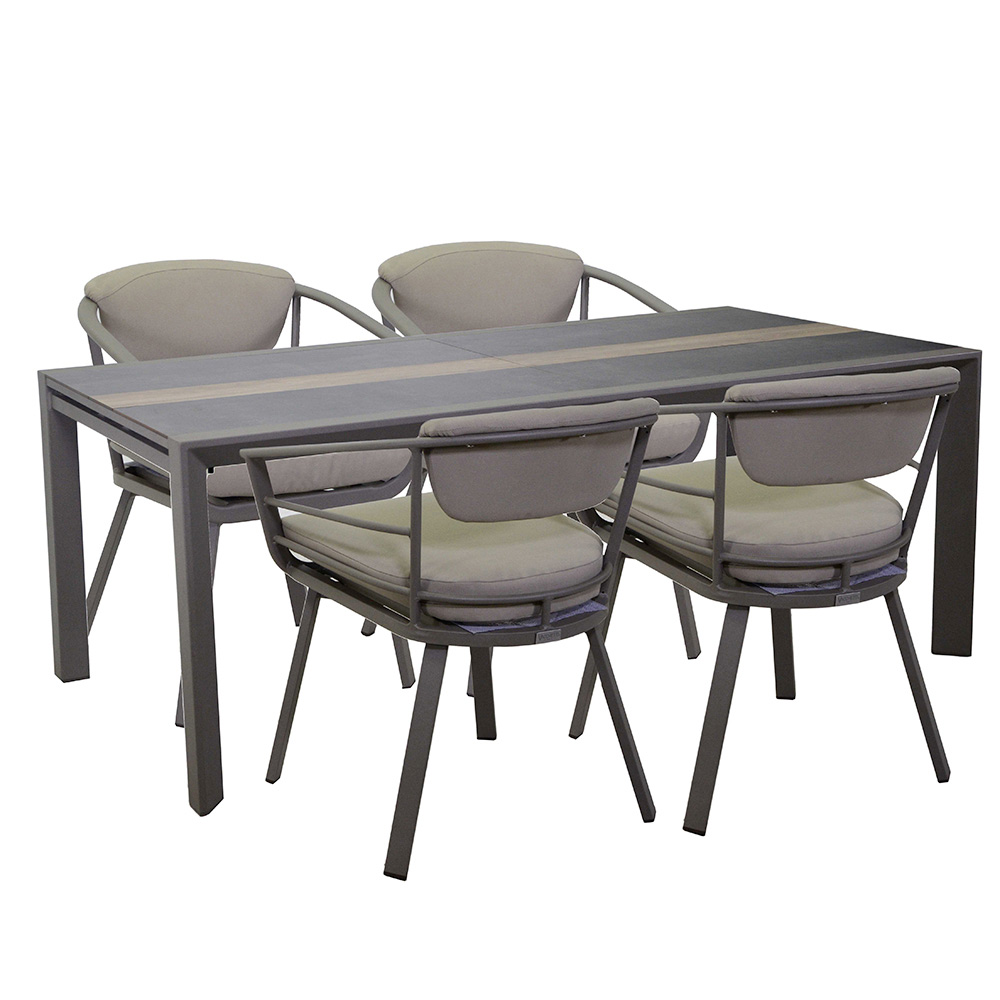 Discover the elegance and functionality of this table with powder-coated aluminum frame , designed to add a touch of style and resistance to your outdoor spaces. The 6mm thick HPL (High Pressure Laminate) table top guarantees durability and a refined aesthetic, with its finish consisting of 9 wood-colored panels that integrate harmoniously into the modern design.