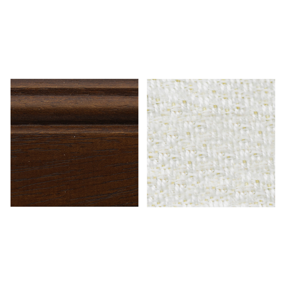 with solid beech wood parts, foam rubber seat, fabric covering, elastic straps , plywood backrest .