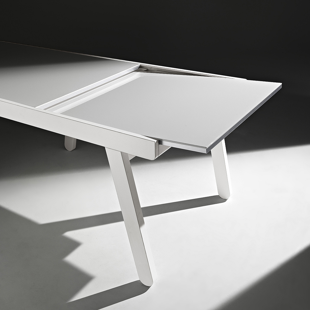 Extendable dining table up to 240 cm entirely made in Italy in lacquered wood . Its practical opening mechanism increases its surface area making it able to comfortably accommodate many people. The innovative design of the base elegantly coordinates with the shape of the top, almost forming a "sculpture" dedicated to our home. Simple and functional, it is adaptable to any environment, from classic to modern and gives every room in the house a touch of style and design .