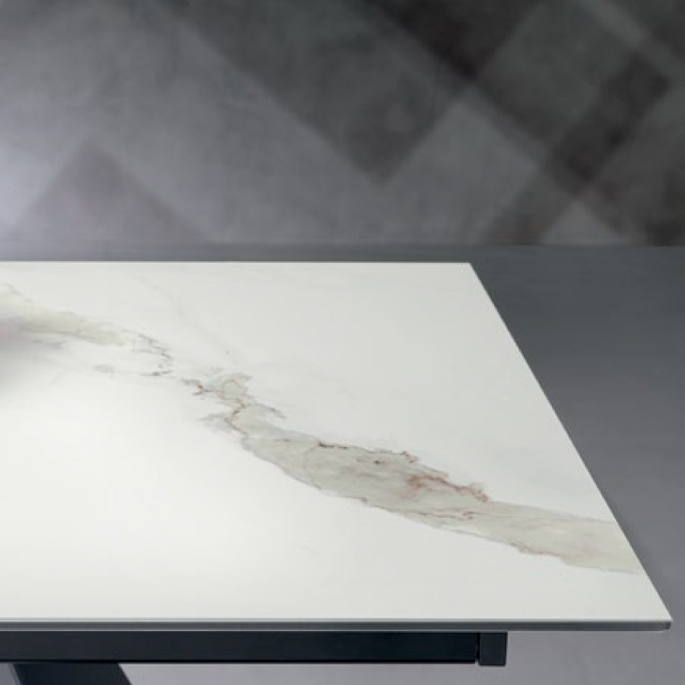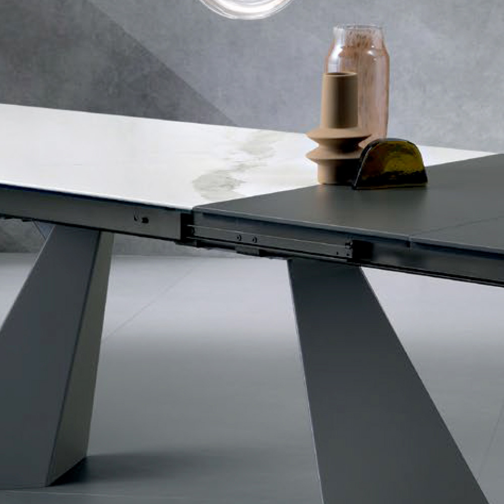 Extendable rectangular table with 10/11 mm thick glass ceramic top.