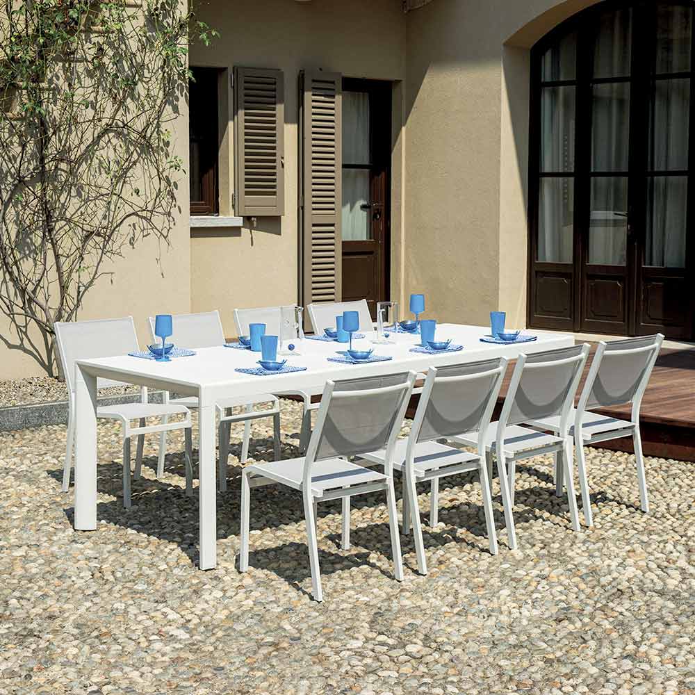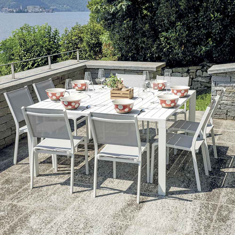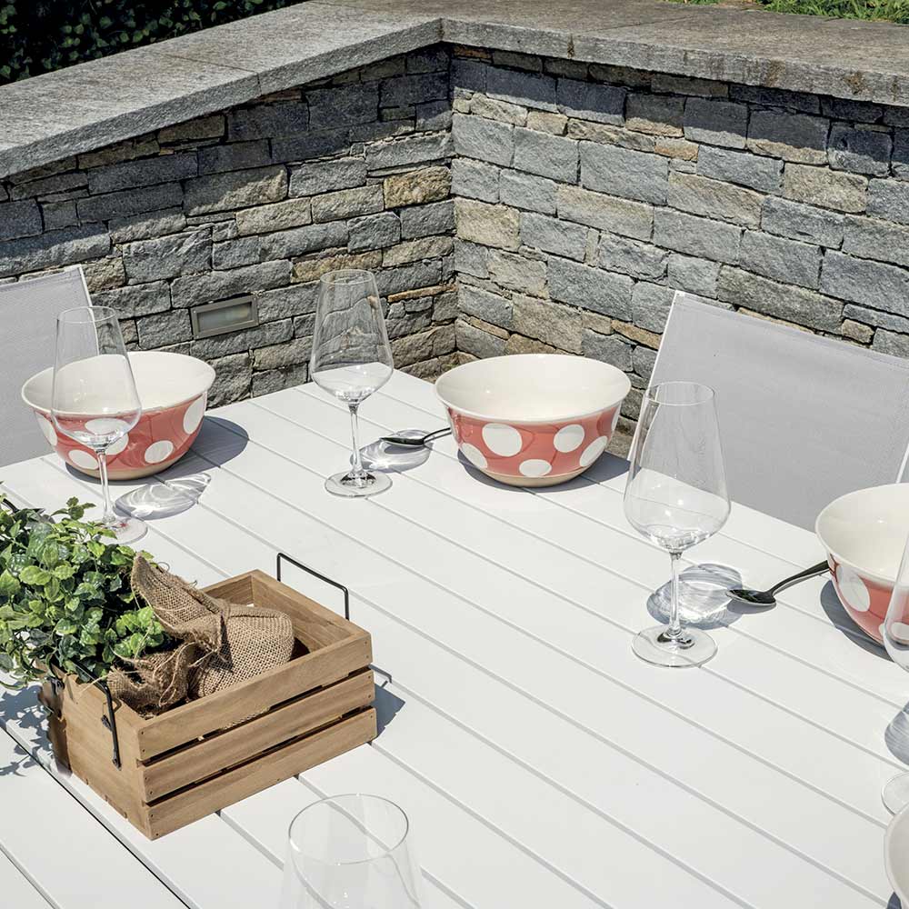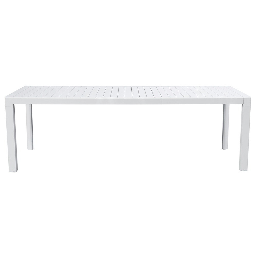 Elegance, strength and practicality meet in this white aluminum table with slatted top, a piece of furniture that combines functionality and modern style. The white finish and clean lines make it suitable for any outdoor space, from the garden to the terrace, adding a touch of timeless sophistication.