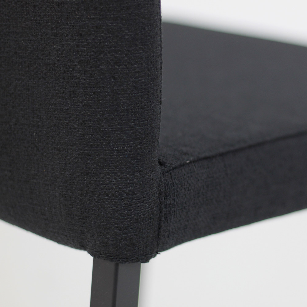 Living room chair entirely made in Italy with high backrest, black lacquered legs and seat in black structura fabric perfect for the home and suitable for contract. This furnishing set is a perfect idea for all those who want to give the room a special and modern touch, without giving up the functionality and comfort given by the soft and comfortable seat. The materials used guarantee quality and durability and make the chair useful for any situation and occasion of use.