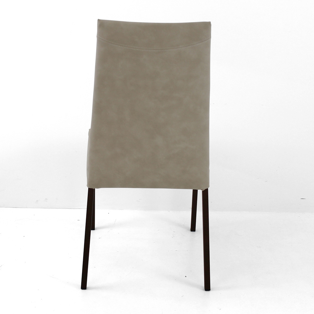 Dining chair entirely made in Italy in ivory-colored rebel leatherette with rust-colored matt lacquered legs. The chair with a modern and captivating design is characterized by a half-moon stitching on the back and a curved backrest which makes it very comfortable and gives it a unique touch of originality. Thanks to its simple and soft finishes, it is a perfect idea for all those who love to furnish their living rooms, dining rooms and kitchens with taste and style without sacrificing functionality and comfort.